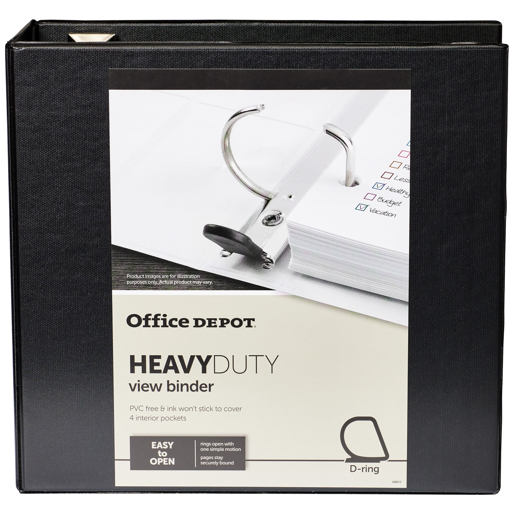 - Ensure your paper work is organized and protected with this Office Depot heavy-duty D-ring binder. Compatibility with standard three-hole punched pages makes it easy to gather your papers for storage, while the binder board construction delivers durability to handle the workday or multiple classes. Featuring nonstick polypropylene covers, this Office Depot heavy-duty D-ring binder resists ink transfer to keep your writing clear and readable.