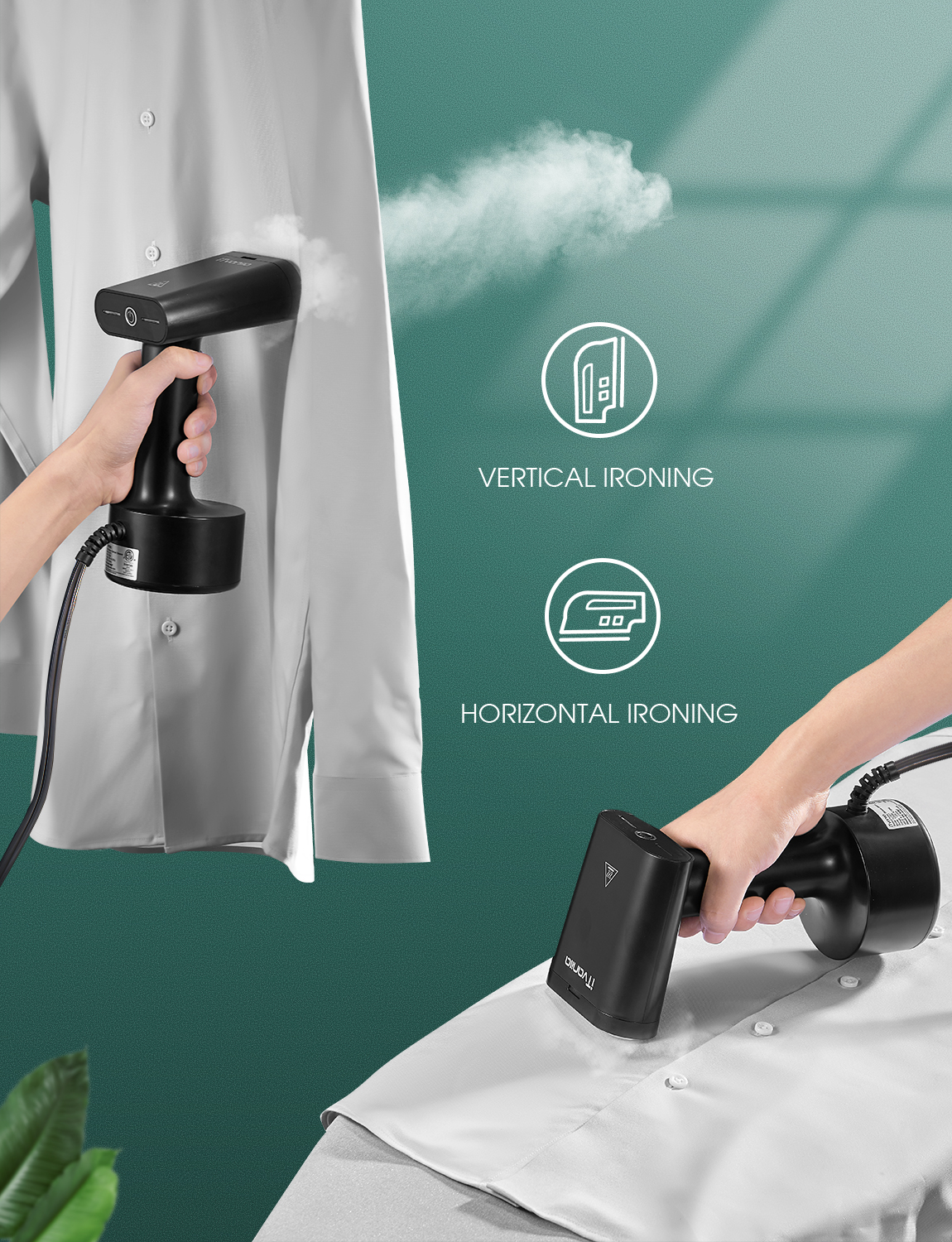 Why choose our multifunctional hand-held garment steamer? The garment steamer is suitable for any fabric, does not use any chemicals, the fabric is smooth and fresh, without wrinkles and disinfection. The steamer is safe and easy to use, suitable for all fabrics, such as cotton, linen, silk, polyester, wool, velvet, curtains, bed sheets and other common blended fabrics. Say goodbye to stubborn folds! It can be used at any angle, allowing you to steam your clothes when placed horizontally or hung vertically. It is small and light, and can be put in the suitcase to provide you with a comfortable journey. Auto-off function, the steamer will automatically turn off the power after being idle for 8 minutes.