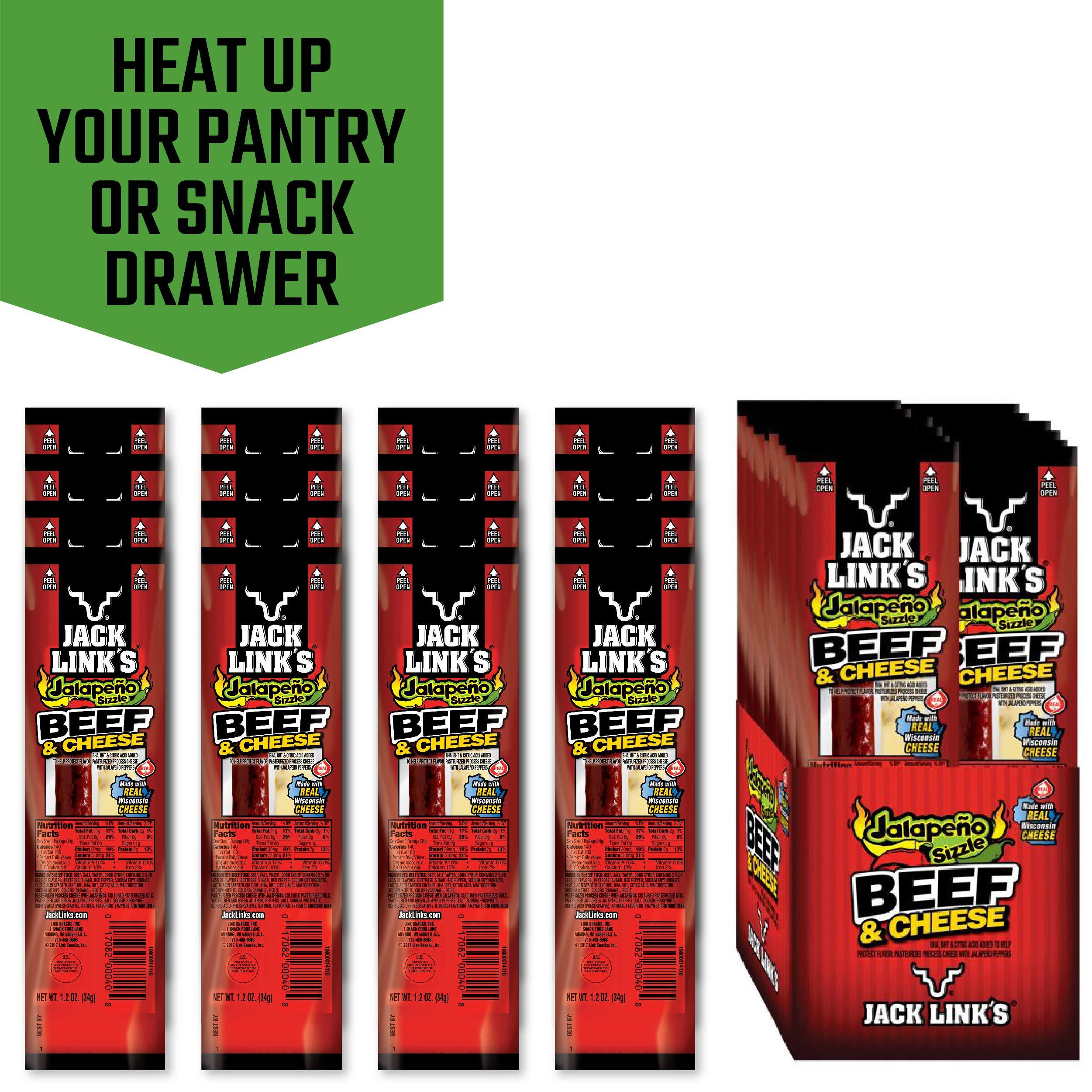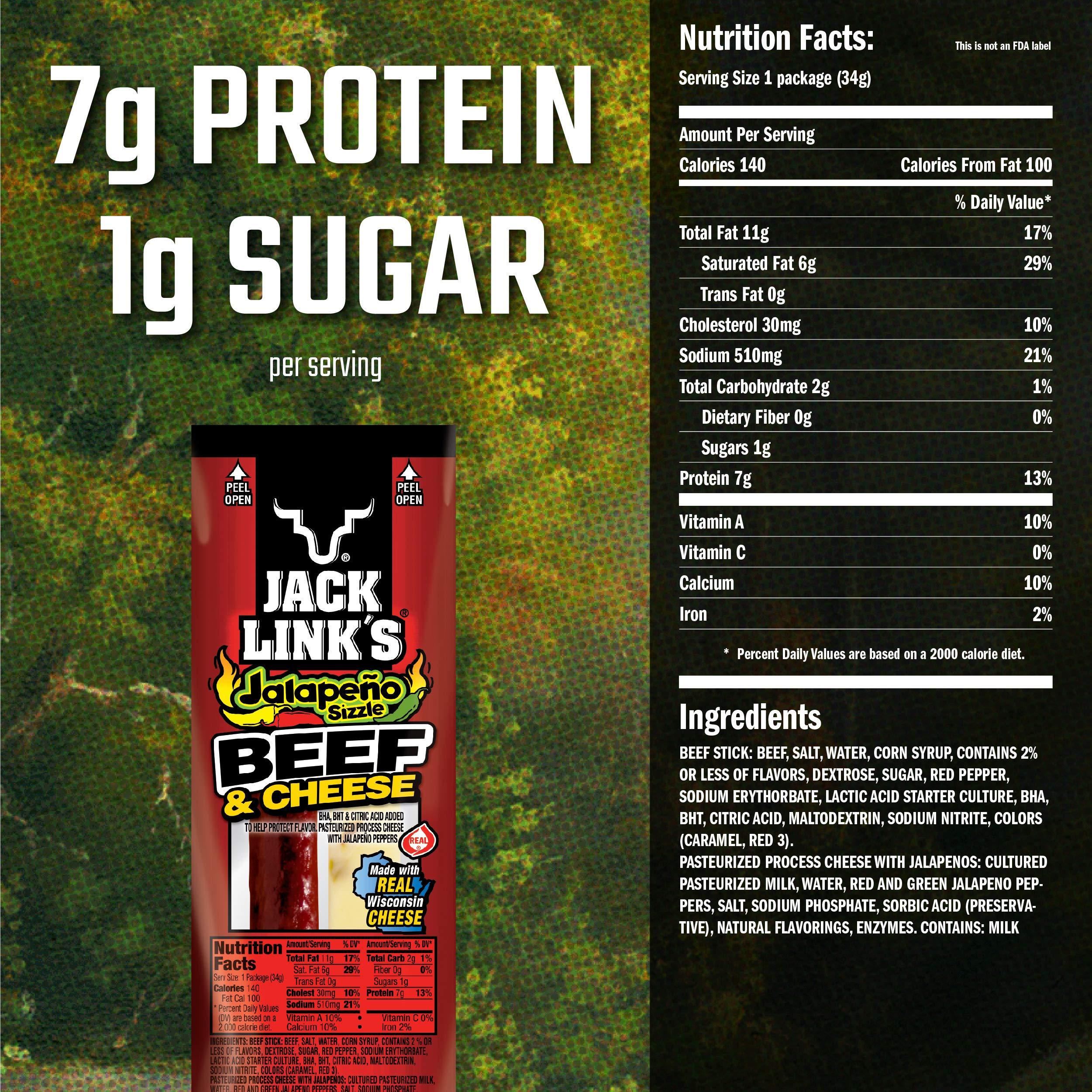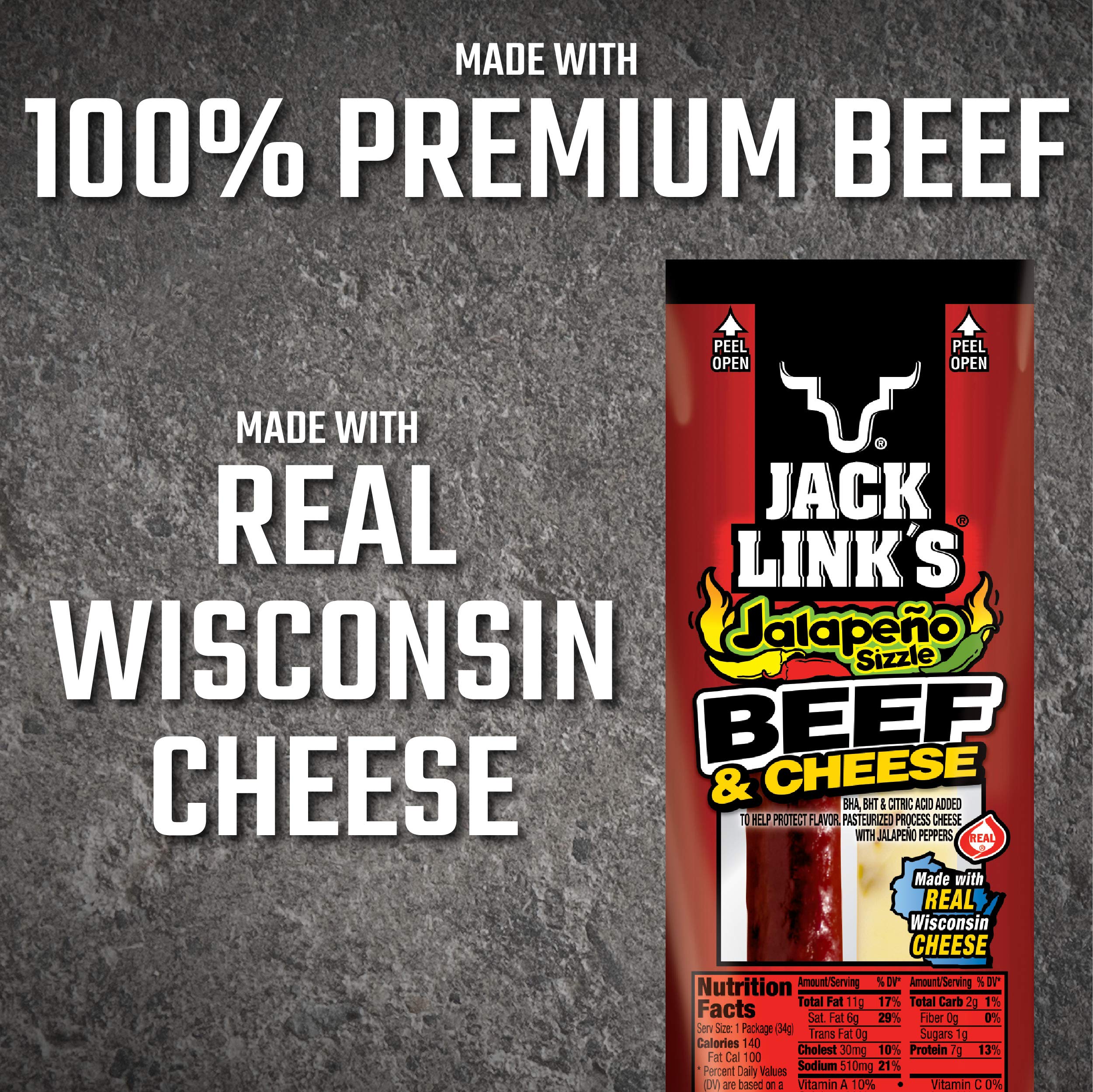 Flavor:Jalapeño – 16 Sticks Jack Link’s offers a number of combination snacksmade with Wisconsin cheeses and savory Jack Link’s Meat Snacks. Jack Link’sCombos are a delicious snacking choice. Varieties and flavors include All-American, Jalapeño Sizzle, Turkey Snack Stick & Cheese and the Jack Link’sJack Pack. The Jack Pack offers a trio of flavors (savory sticks, crunchy rodsand Wisconsin cheese) and great taste in one convenient package.
