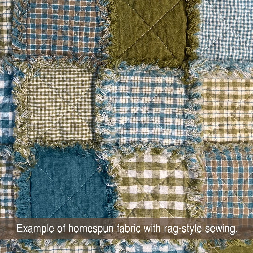 This soft 100% cotton yarn-dyed homespun fabric is 44 to 45 inches wide and the perfect fabric to use for the popular ragged style quilting. Machine wash cold and line dry.