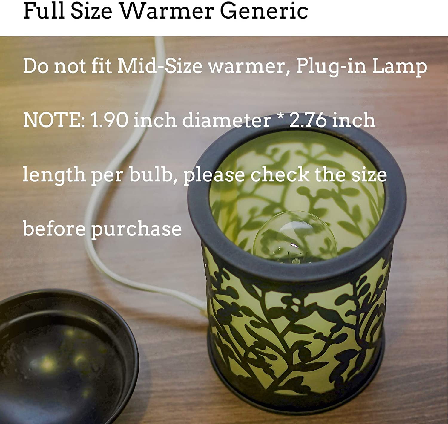 - Safe& Long Lasting: Highly reliable bulb rated at 1500 hours, High Temp Resistance up to 300℃/570℉. Fits for full-sized warmers, burners or melters. Well Packaged, efficiently reduce the risk of broken, if there’s broken, we will compensate you for the lost at once