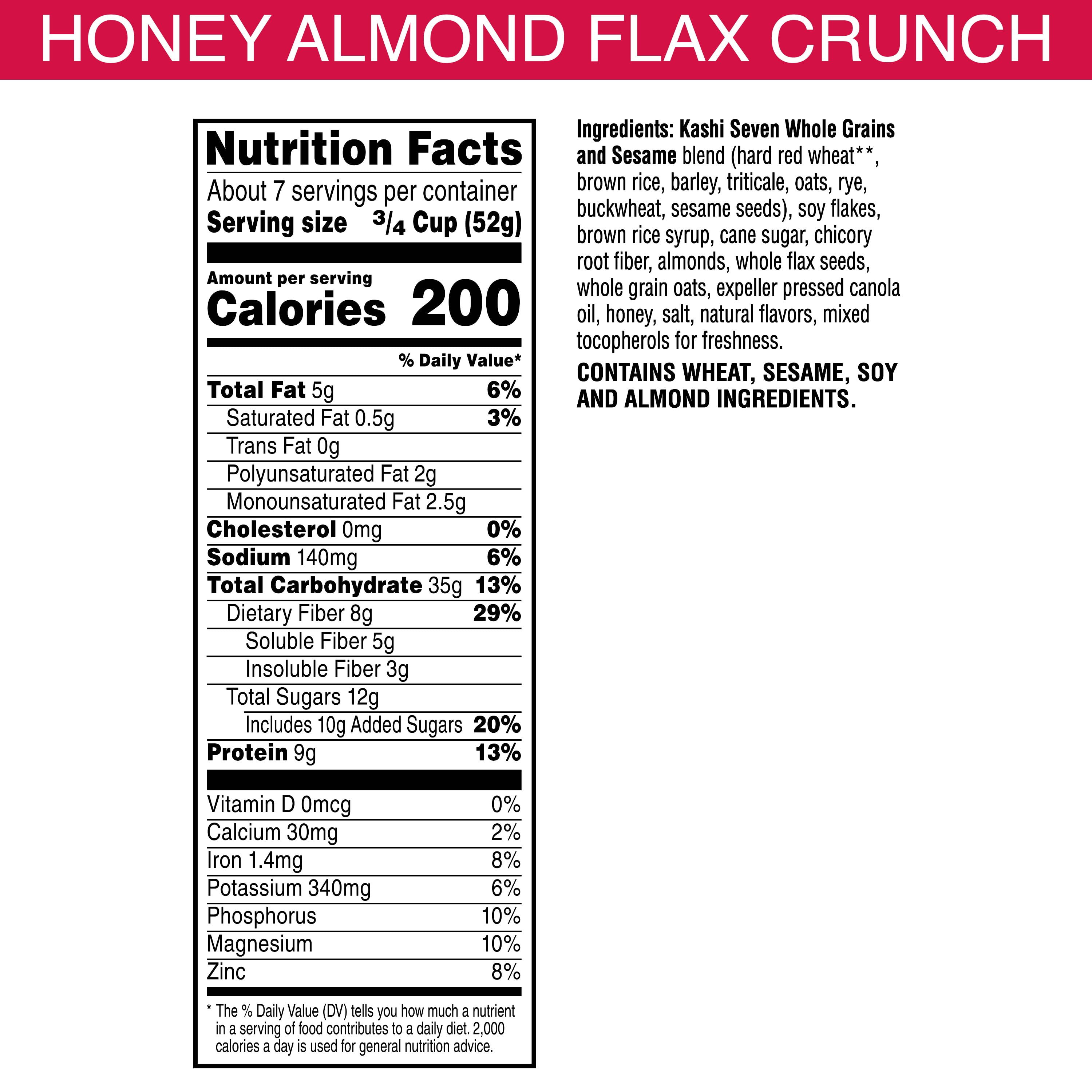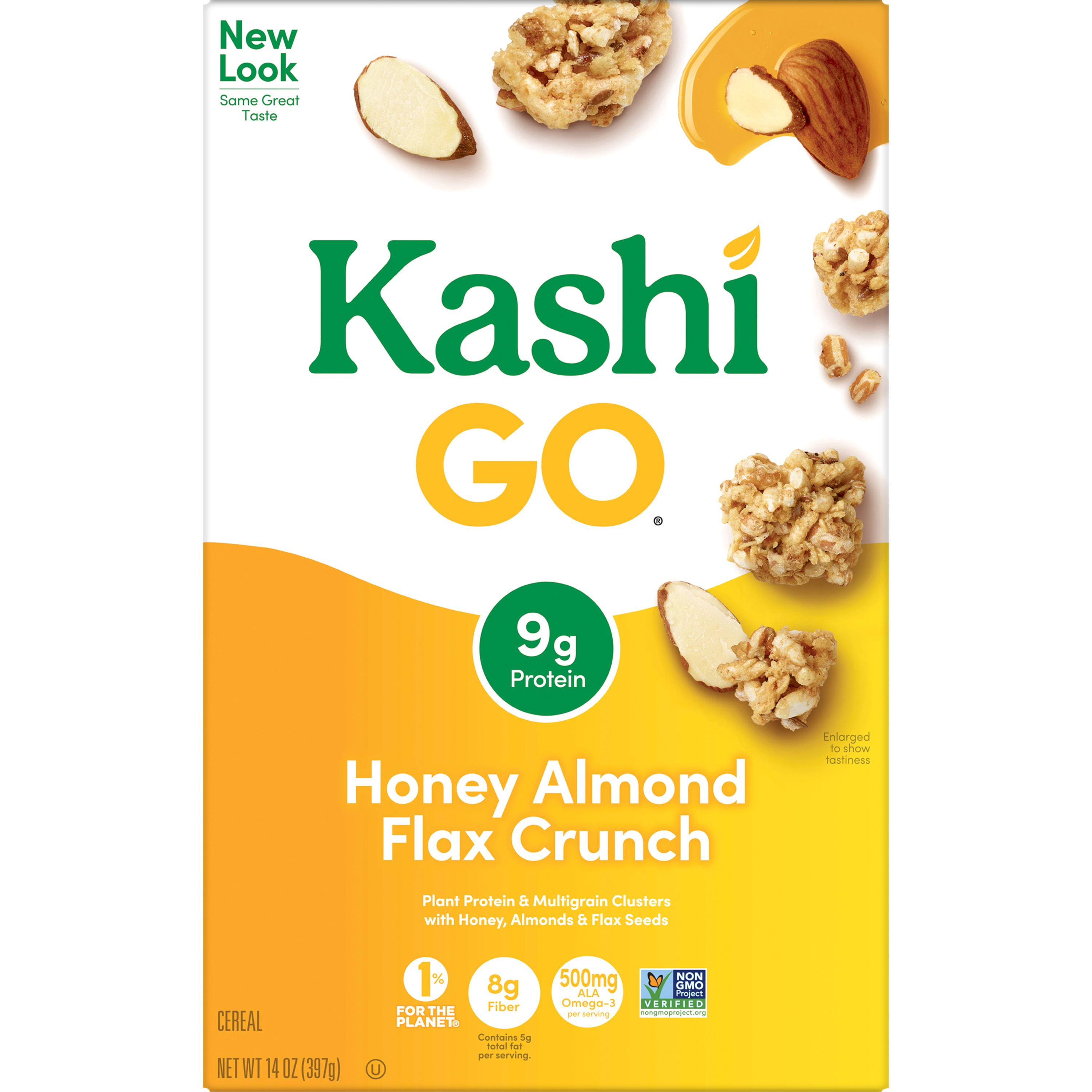 - Includes 1, 14-ounce box of Kashi GO Honey Almond Flax Crunch cereal; Packaged for freshness and great taste