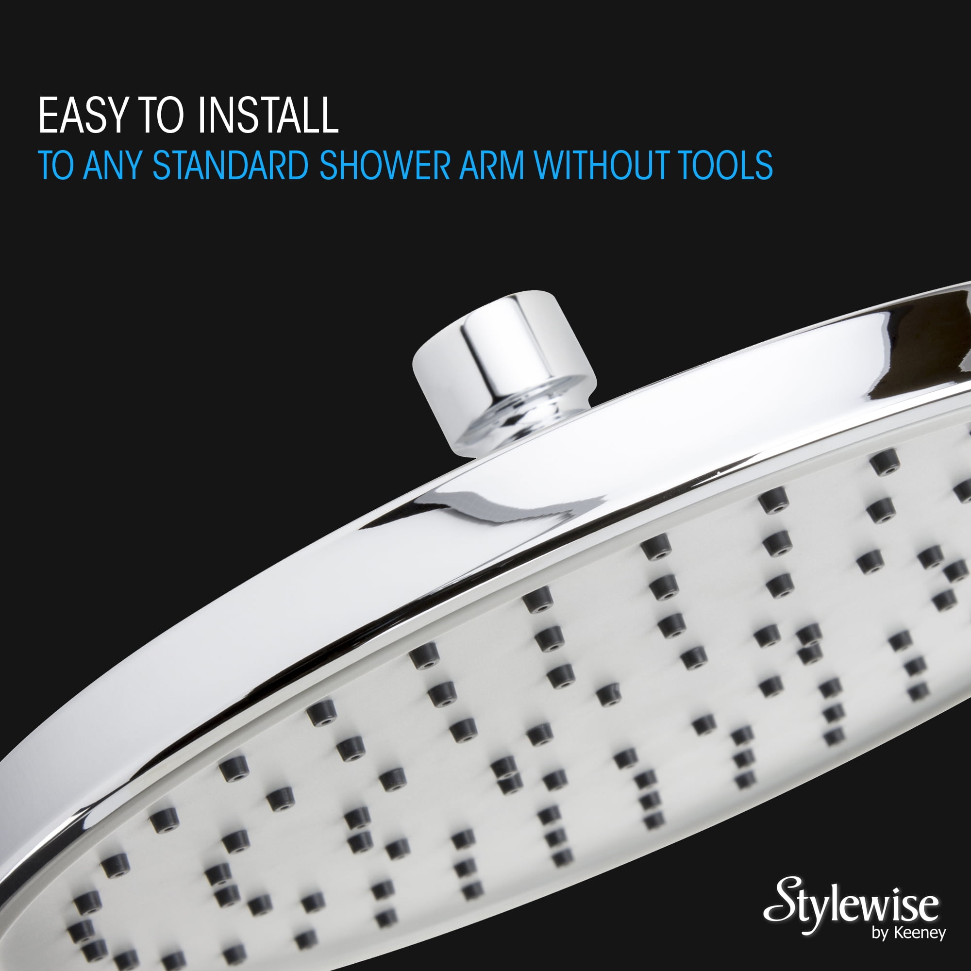 Stylewise by Keeney products are affordable luxury designed to effortlessly fit into your home, putting the finishing touch on any project. Whether for the kitchen or bathroom, the collection offers decorative accessories, such as toilet tank levers, fashion drain traps, and shower heads, which complement the hardware and finishes of existing faucets/appliances. This Keeney K711CP Stylewise Rain Shower Head With Full Coverage Spray has a chrome finish that gives an updated look to any bathroom. The 8.39" round face provides an elevated shower experience with complete body coverage for a rainfall effect you’ll love. There are EZ clean rubber nozzles for hassle-free maintenance and a water saving flow rate of 1.8 gallons per minute. Stylewise by Keeney is function you need, with style you want. You can install with confidence knowing that Keeney shower heads are backed with a Limited Lifetime Warranty.