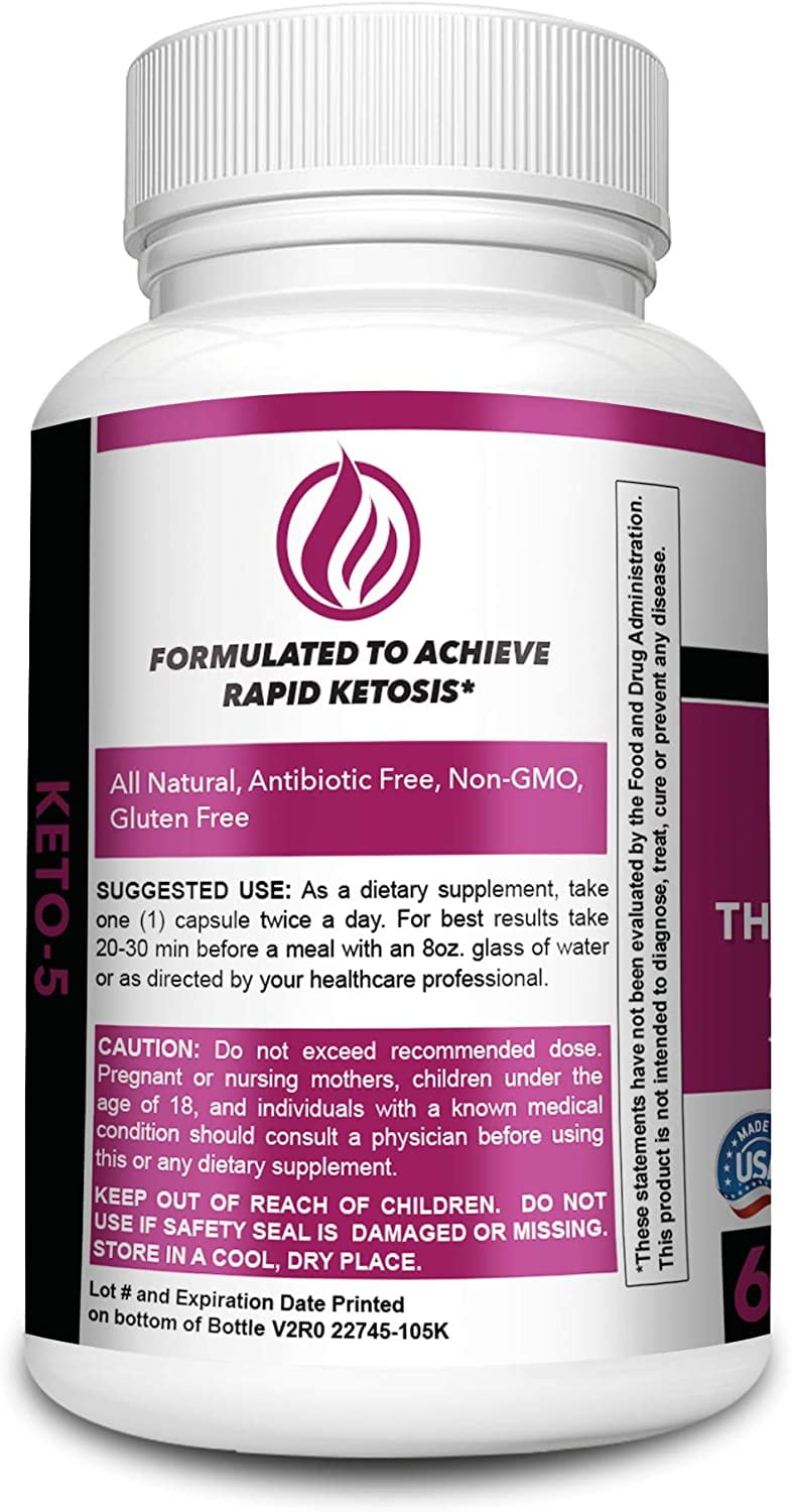 Keto-5 Extra Strength, premium Formula – Our Proprietary Advanced Keto Diet Pill formula has a potency of 650mg so you may enter the metabolic state of ketosis easier and stay there. Naturally Suppresses Appetite – custom blend uses 3 of the most popular ingredients of raspberry ketones, green coffee bean and Garcinia Cambogia to help your body burn fat cells and not the carbohydrates in your body. Keto-5 Advanced Pills are the ideal formulation of ketones supplements that support your ketogenic diet plan and enhance quick, safe weight loss. ……..PROMOTES HEALTHY METABOLISM-A fast, a healthy metabolism is key. Our Keto weight management supplement works with your body to help boost your metabolism so you burn more calories. It acts as a brain energy supplement too. So when you buy this blend you get both a weight management supplement and also a supplement for brain energy. You can only get better using this blend of ketone supplements. All-natural, Antibiotic Free, Non-GMO, Gluten-Free, Vegan Friendly. Made In The USA – Proudly made in the USA and formulated by professionals, our research verified tablets are manufactured and tested in our GMP certified facility to ensure premium quality.Keto-5 Blend Extra Strength, Super Keto Blend with Raspberry Ketone, Green Tea, EGCG, Green Coffee Bean, Appetite suppressant for Weight Loss and Fat Loss, Natural Weight Loss Supplement, Made in USA