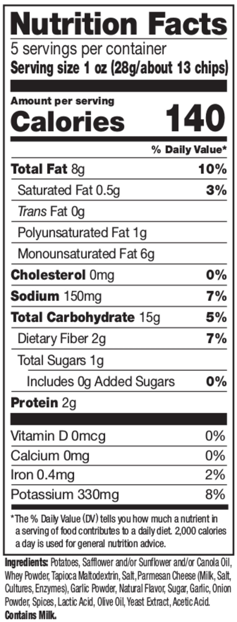 - PARMESAN CHIPS: Potato chips seasoned with the bold taste of parmesan and garlic