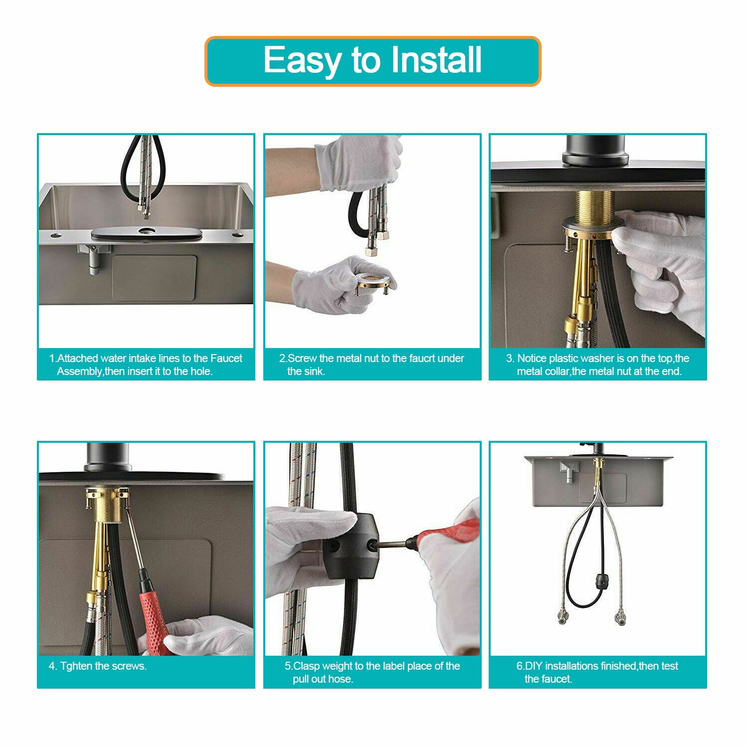 - What You Get: Single Handle Kitchen Faucet*1, Weight Ball*1, Deck Plate*1, Inlet pipe*2, Installation Instruction*1