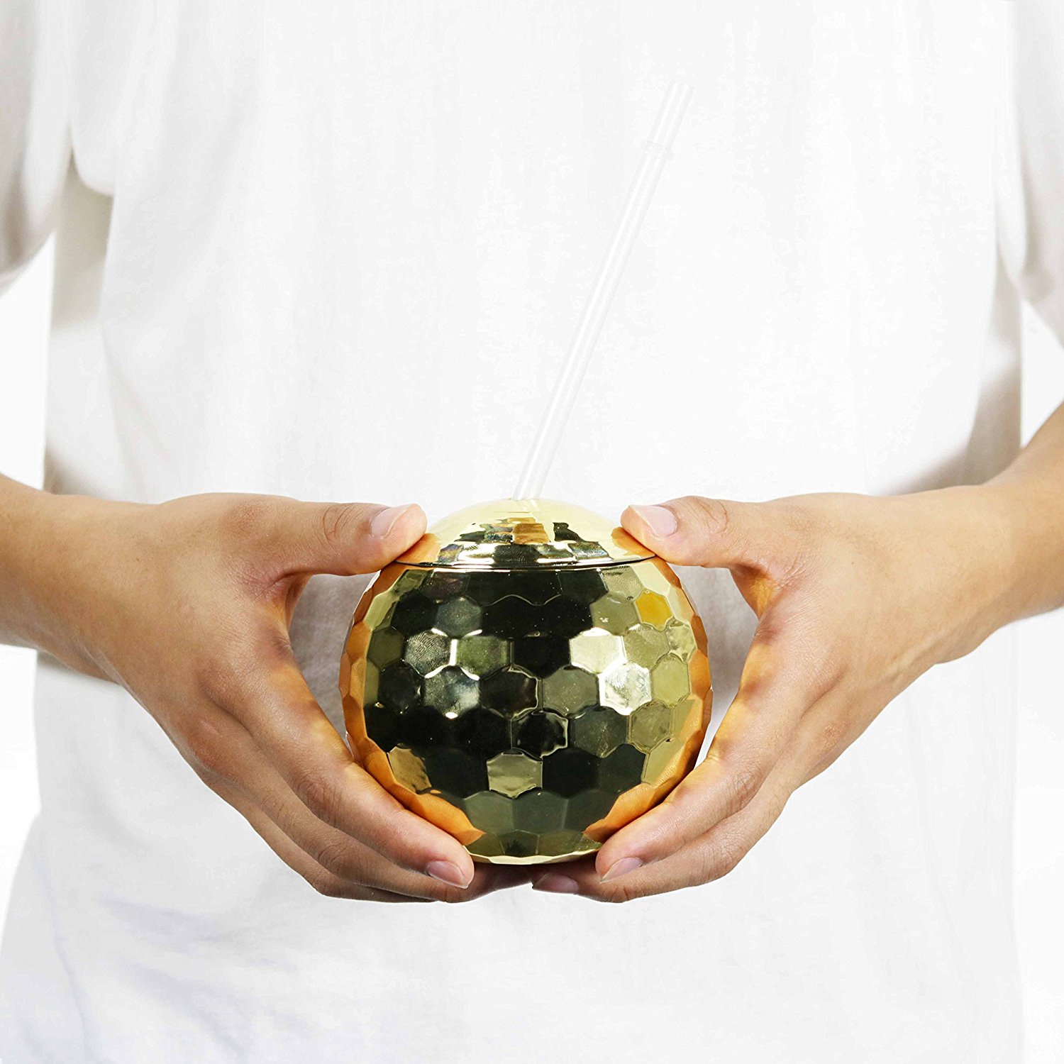 Koyal Wholesale 1970s Gold Disco Ball Drink Tumbler with Straw