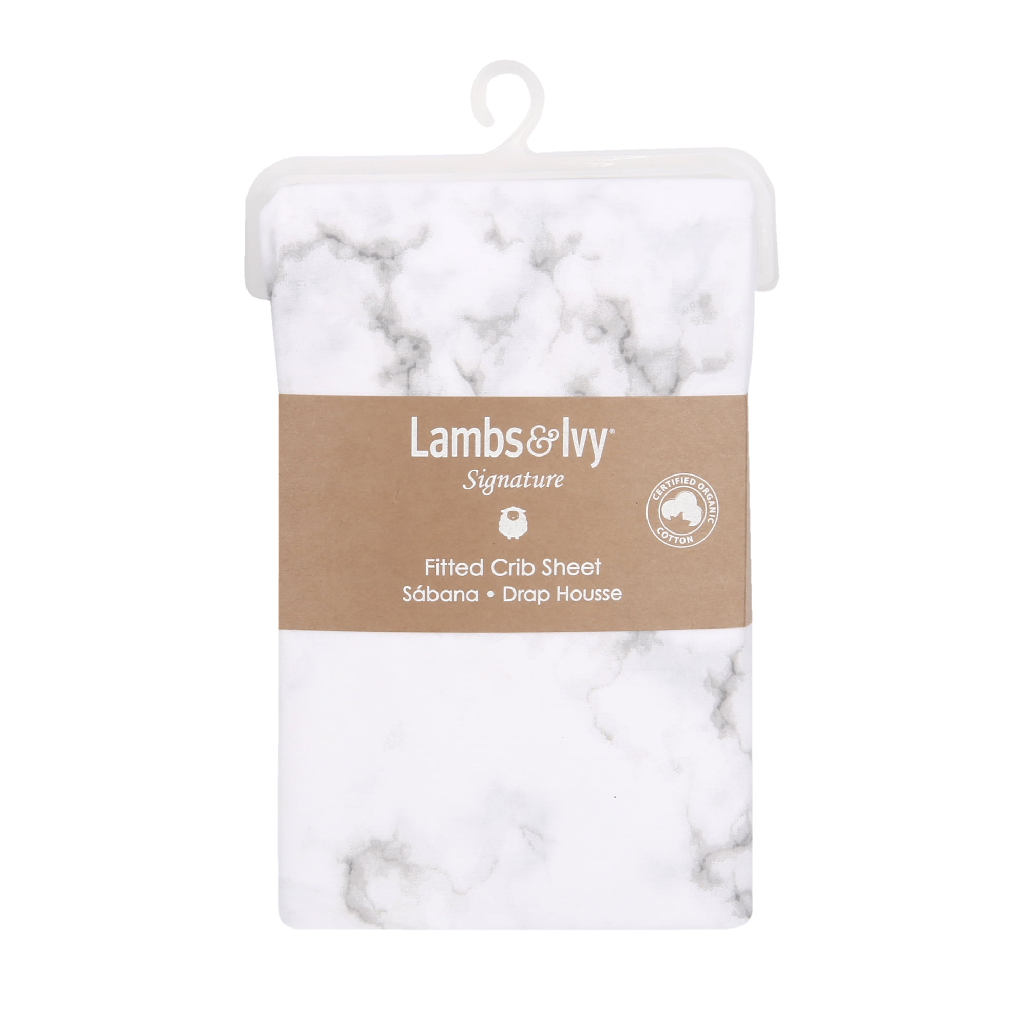 Lambs & Ivy Signature Gray/White Marble Organic Cotton Fitted Crib Sheet