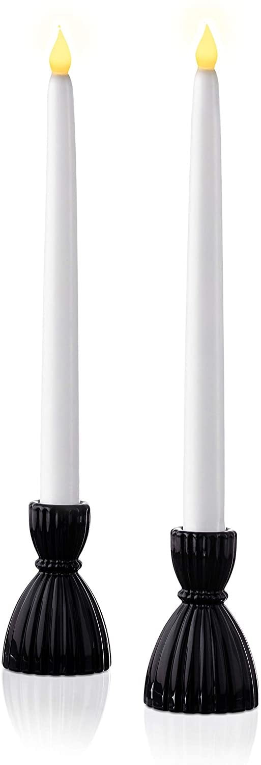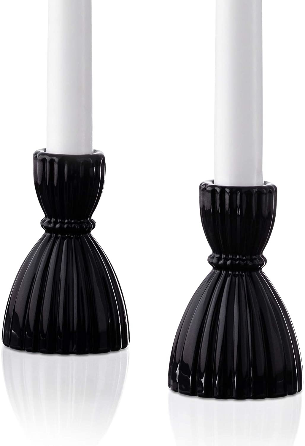 - CHIC CANDLEHOLDERS: Our pair of vintage-inspired candlestick holders in glossy black finish features an elegant hourglass shape and fluted texture. | Dimensions: 2.5" D by 3.5"H. Candle Hole Size 0.75”D.
