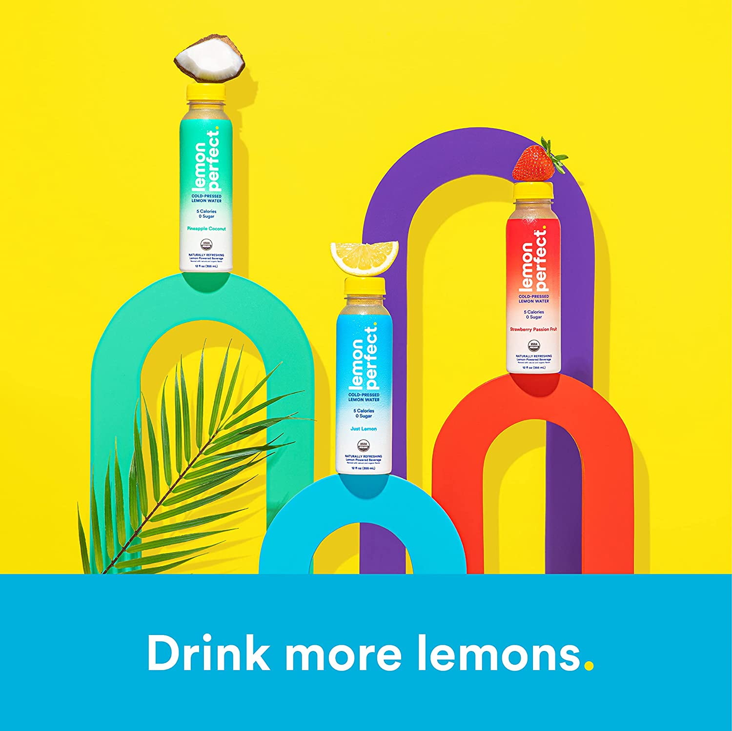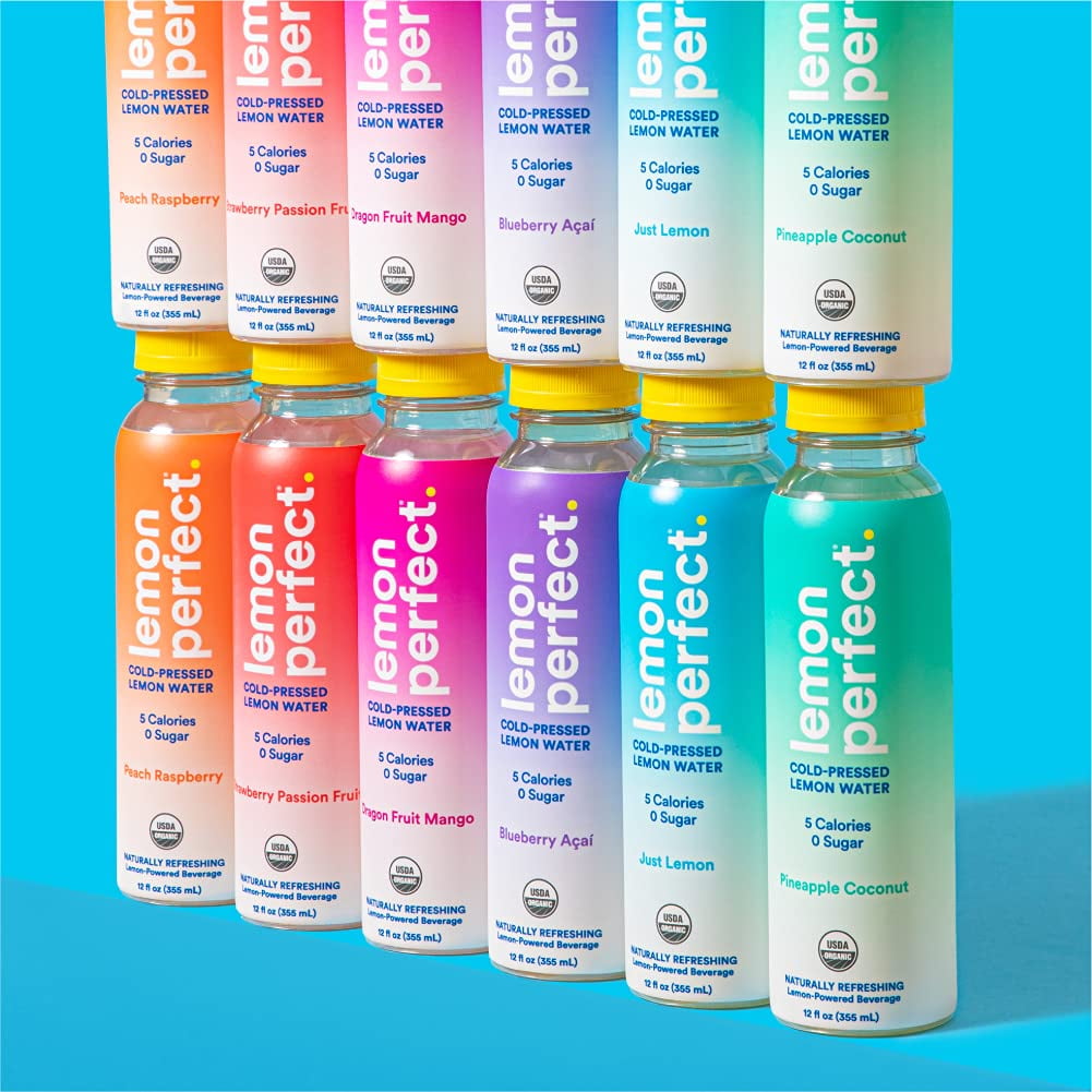 FULL OF FLAVOR: Lemon Perfect delivers a naturally refreshing vacation-like flavor.ZERO SUGAR: With only five calories, zero sugar, and 1 net carb, Lemon Perfect bottled water is low glycemic, fast-friendly, and keto certified.ALL-NATURAL INGREDIENTS: Lemon Perfect delivers all-natural, lemon-powered flavored water with only 6 simple ingredients: triple-filtered water, organic cold-pressed lemons, organic plant-based sweeteners, organic flavors, and vitamin C.POWERED BY LEMONS: We cold-press half a California-grown organic lemon, then use gentle processing and cold-fill our bottles to naturally maintain the hydrating superfruit benefits of freshly squeezed lemons. Proudly Certified USDA Organic, Non-GMO Project Verified, Keto Certified, Certified Gluten-Free, Certified Vegan, OU Kosher, 1% for the Planet.6-FLAVOR 12-PACK: Pack contains (12) 100% recycled plastic bottles of Lemon Perfect (12 fl oz bottle) in six naturally refreshing flavors: Just Lemon, Dragon Fruit Mango, Blueberry Açaí, Peach Raspberry, Pineapple Coconut, and Strawberry Passion Fruit (2 bottles per flavor)