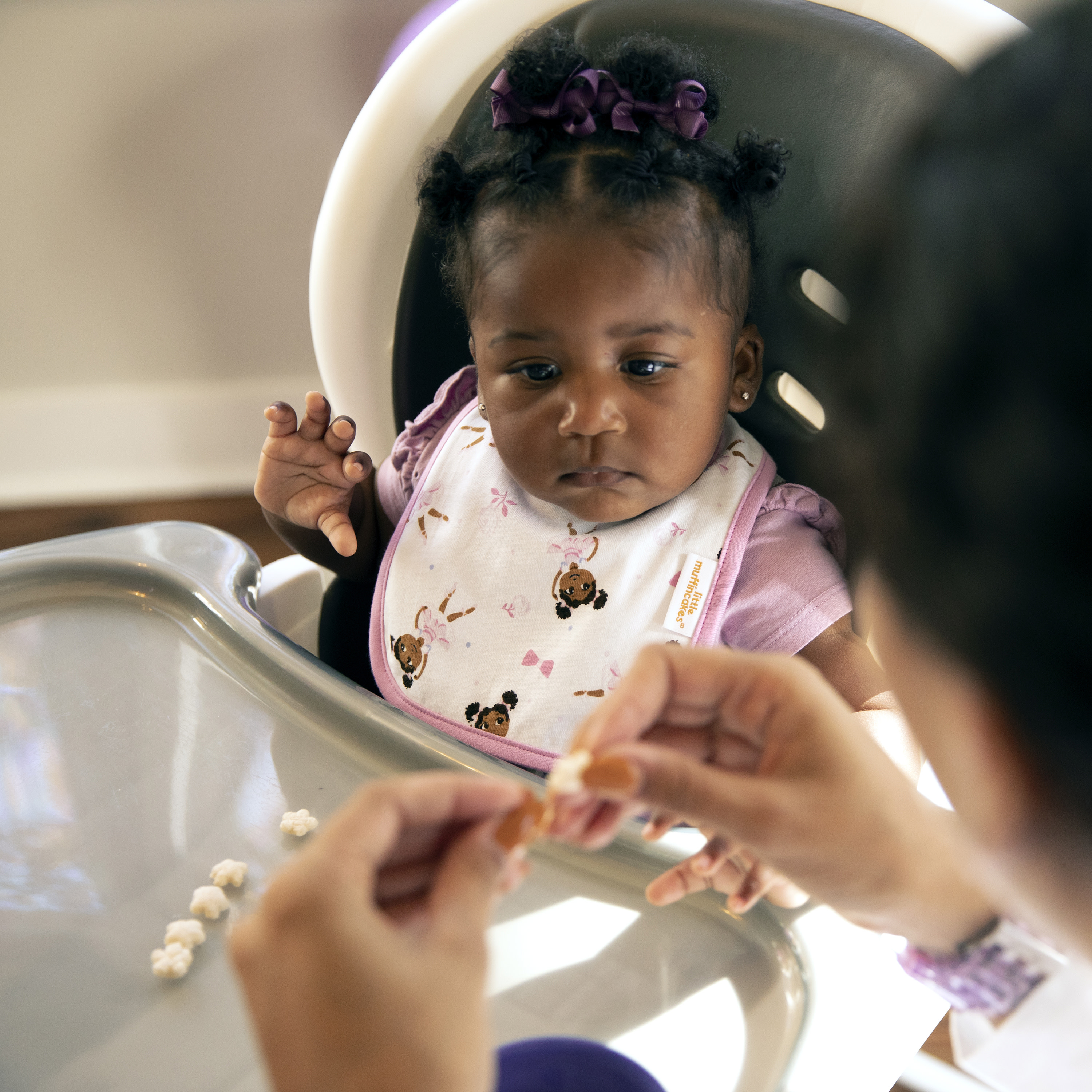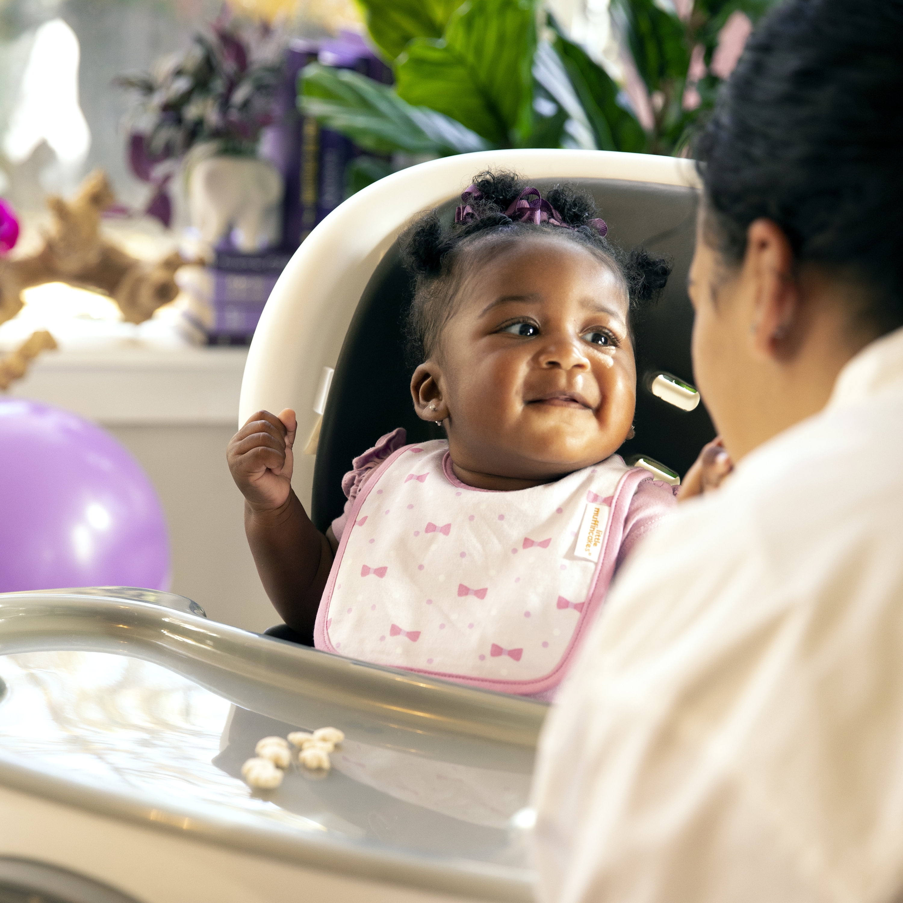 - Multi-layered fabric absorbs drools and spills