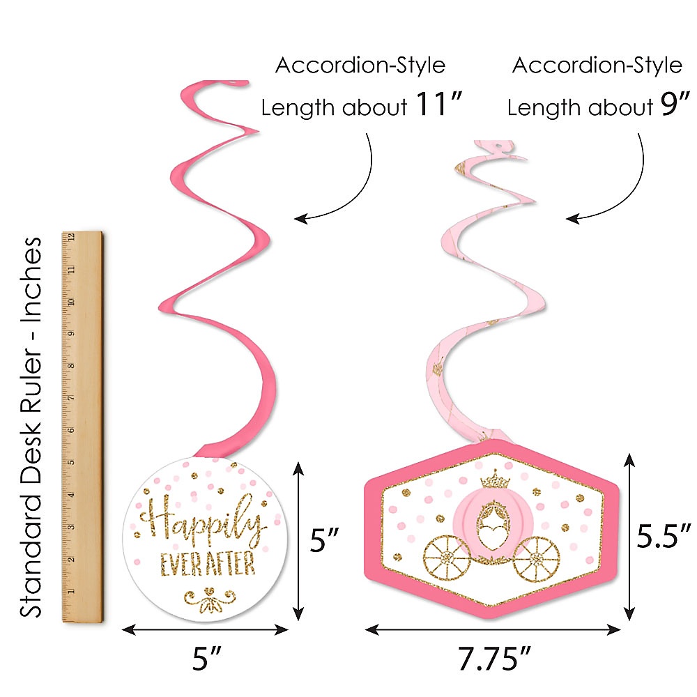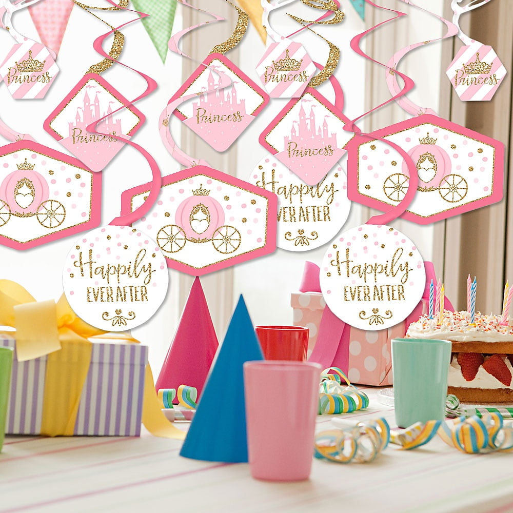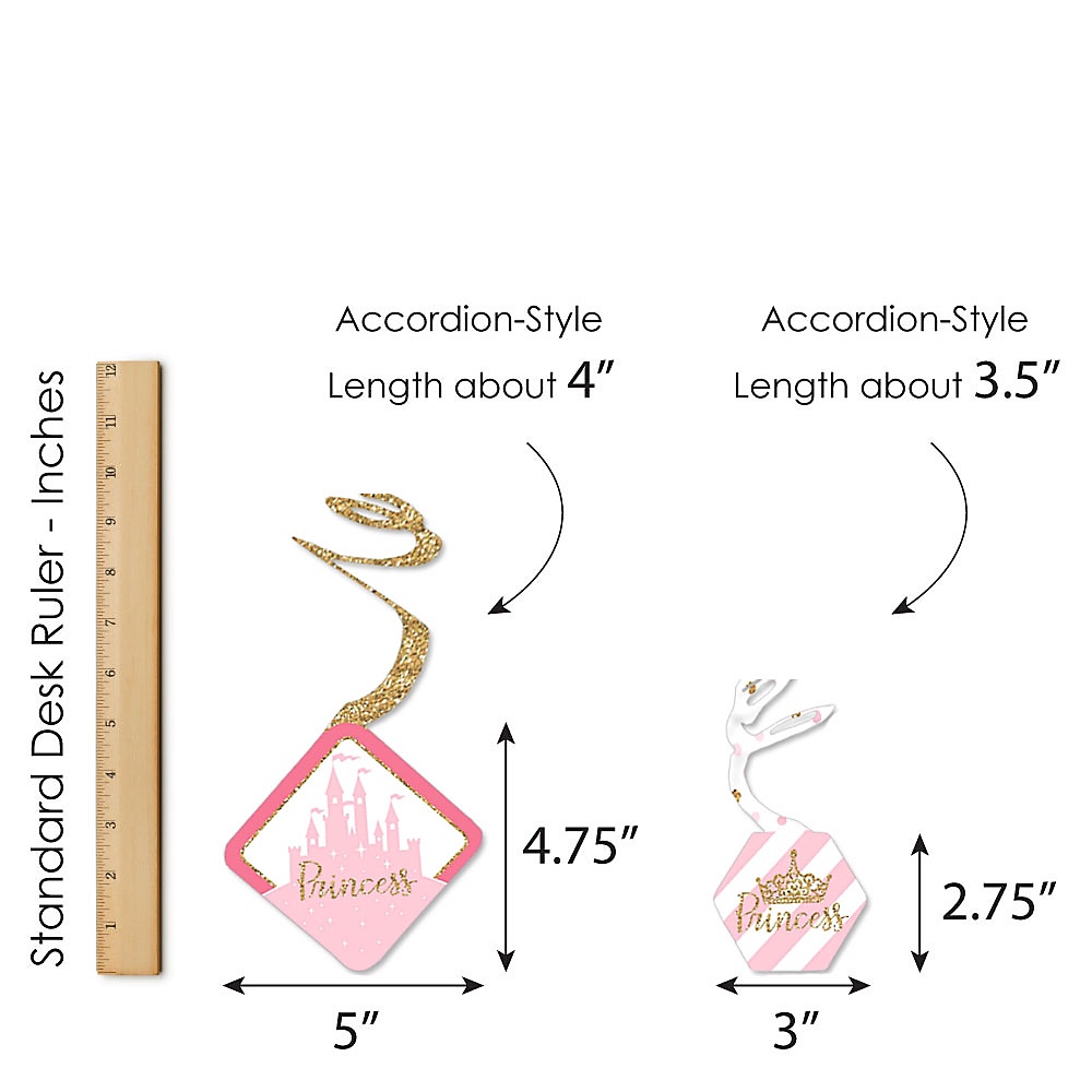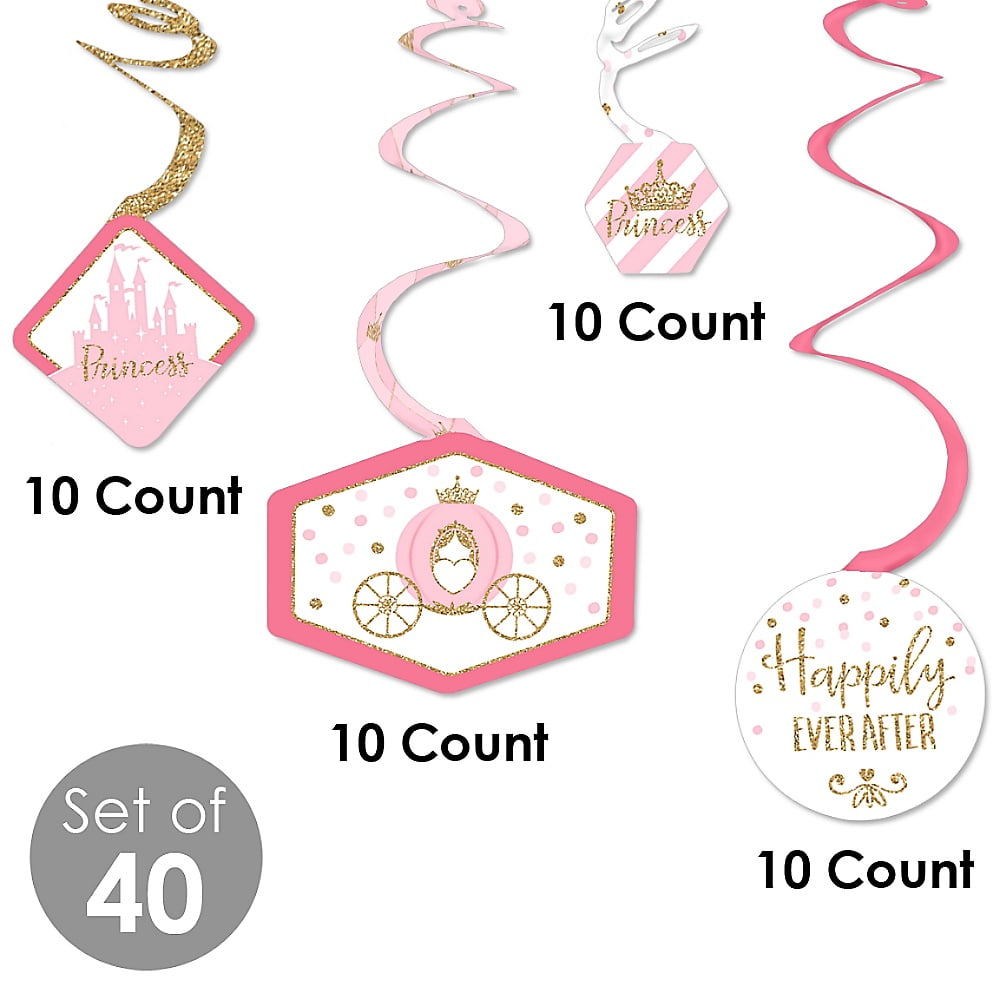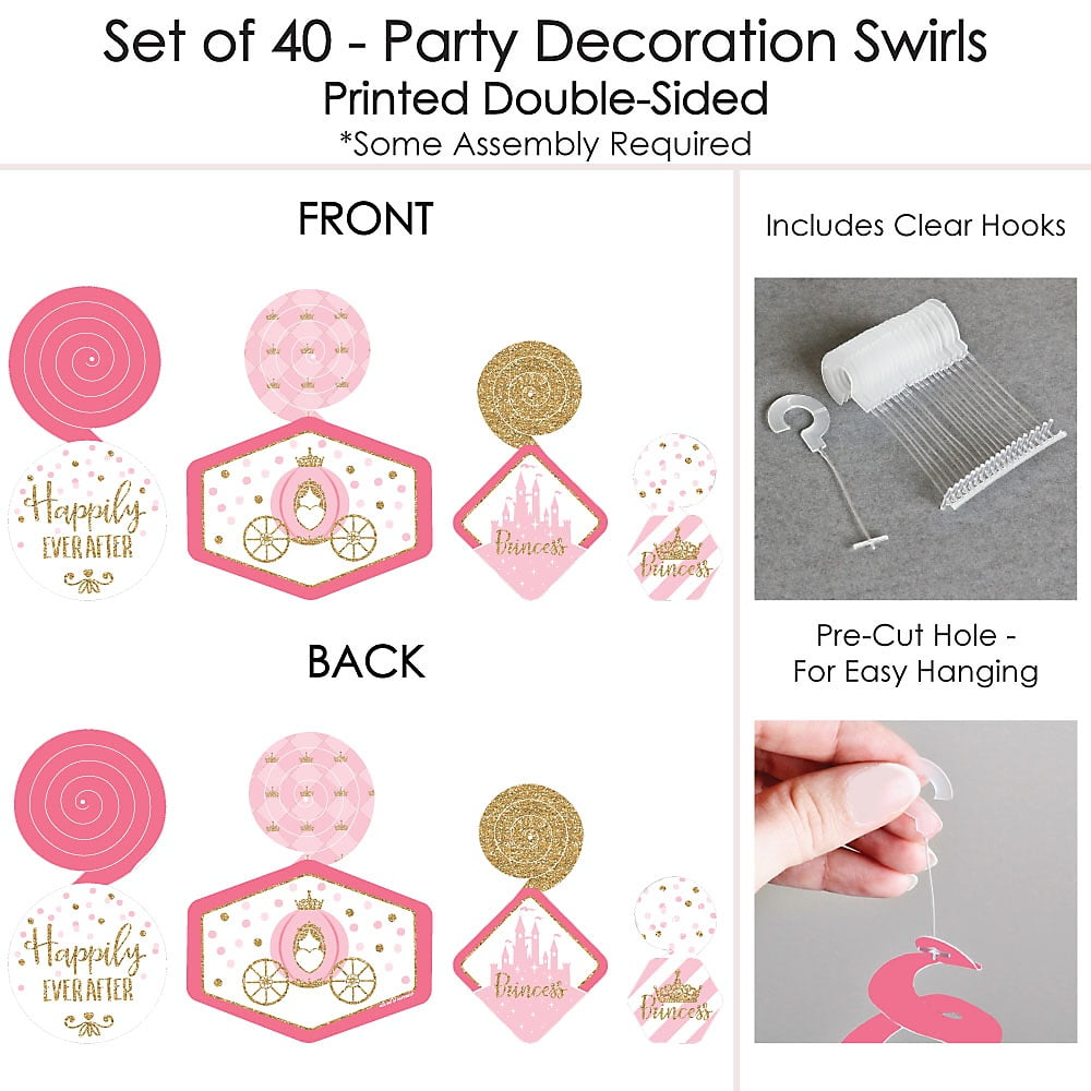 Little Princess Crown – Pink and Gold Princess Baby Shower or Birthday Party Hanging Decor – Party Decoration Swirls – Set of 40