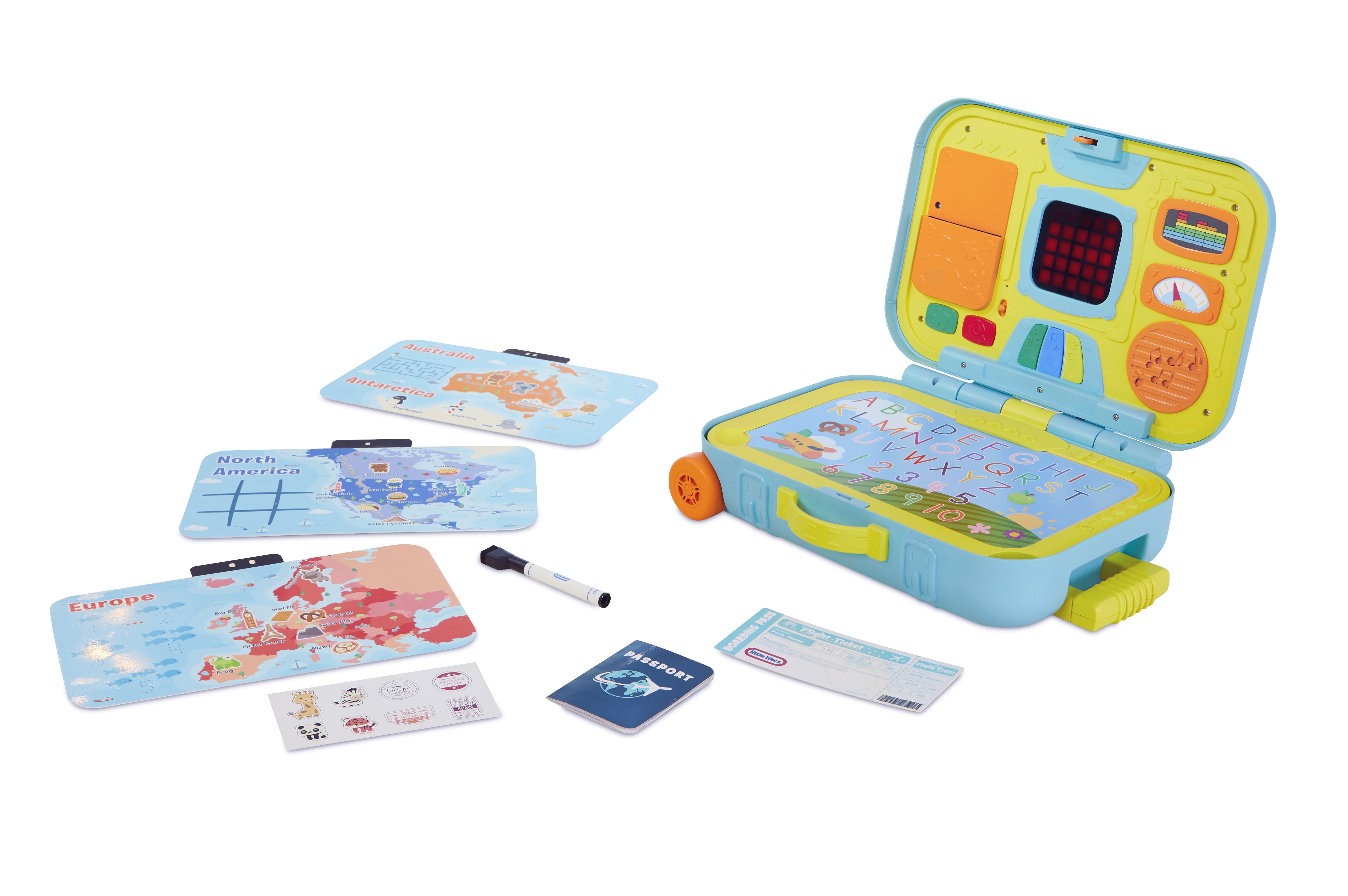 Learn and grow wherever you go. Get packed and ready to explore the world with Little Tikes Learn & Play Learning Activity Suitcase. It features three activity modes so kids can discover, pretend play and enjoy songs, sounds and phrases. An extendable handle means kids can roll their suitcase anywhere, like on a playdate, day trip or long holiday vacation. They’ll pretend they are traveling the world with over 60 sounds, songs and travel phrases, and get an introduction to global awareness, as well as letters, numbers and shapes. Girls and boys ages 3 years and up will love going on adventures around the world, all within one great toy. Bon voyage!