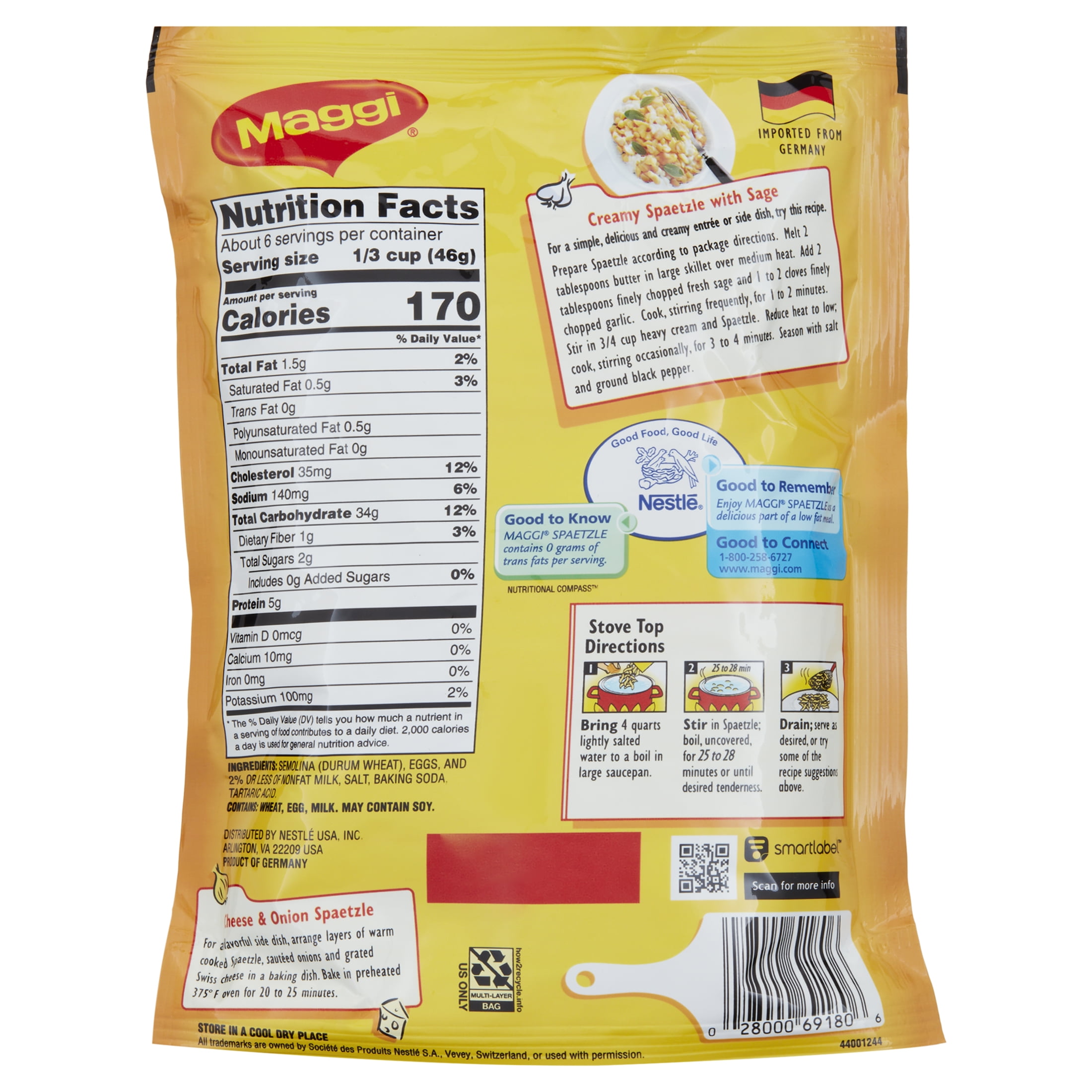 - One 10.5 oz pouch Maggi Spaetzle Authentic German Dumplings