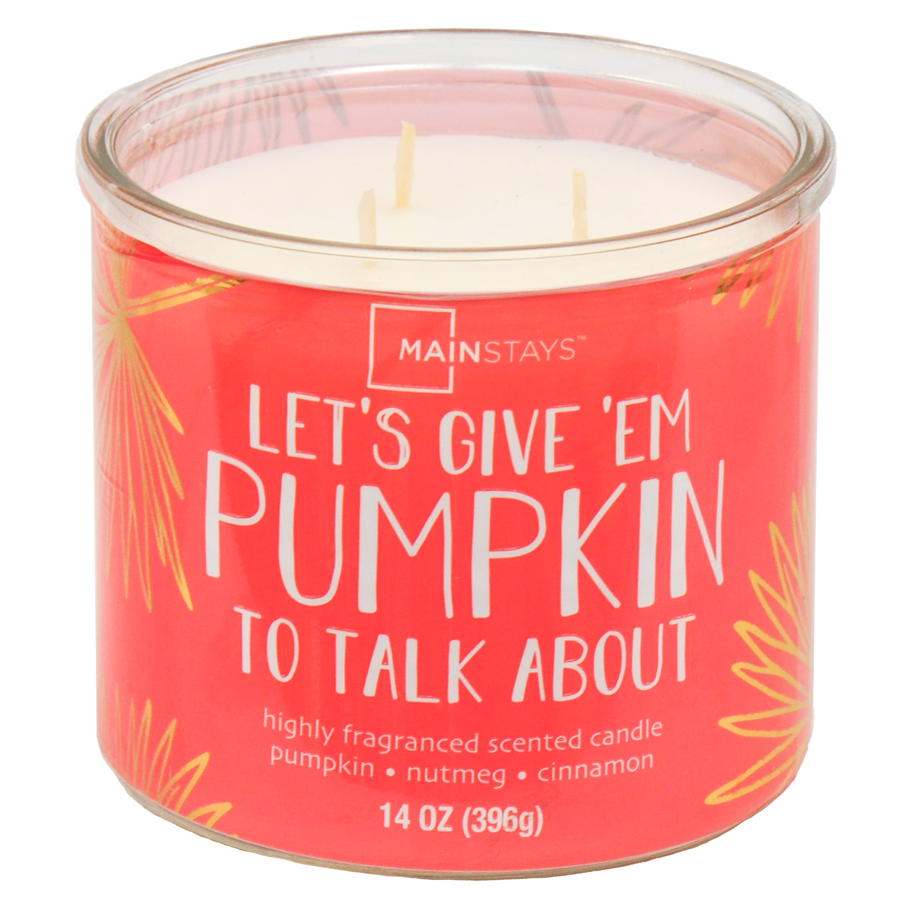 Mainstays 14 Ounce 3 Wick Candle Let’s Give ‘Em Pumpkin To Talk About Wrap