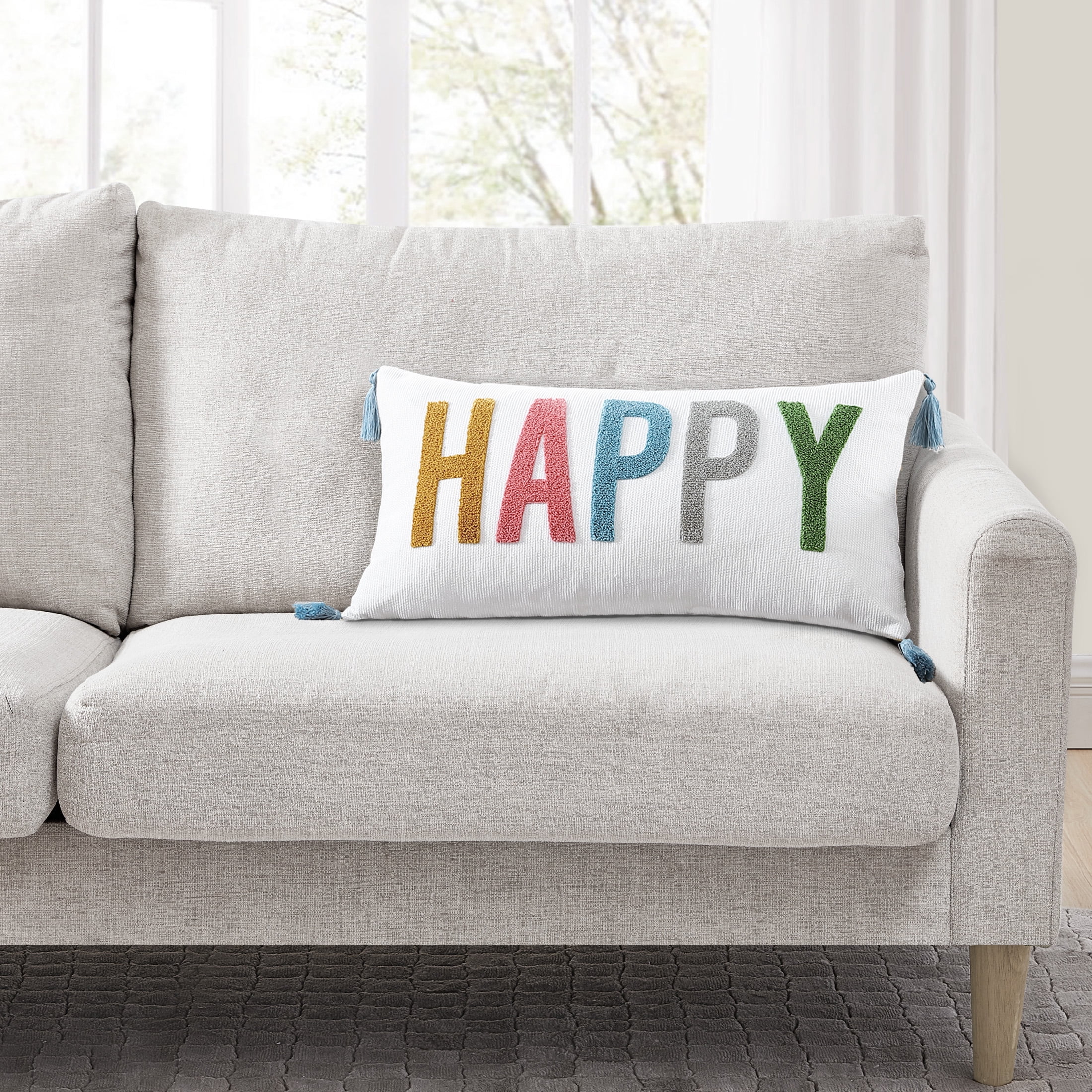 Add a welcoming touch to your home décor with the new Mainstays Happy Colorful Decorative Pillow! This beautifully designed 12”x22” pillow is made with fun techniques and durable fabric. The multi-colored lettering accents any room with an effortless wash of color! The pillow cleans easily with simple spot care. These are also great for pairing with other pillows, adding variation of different shapes and sizes. Decorate your home with a welcoming and special look today!