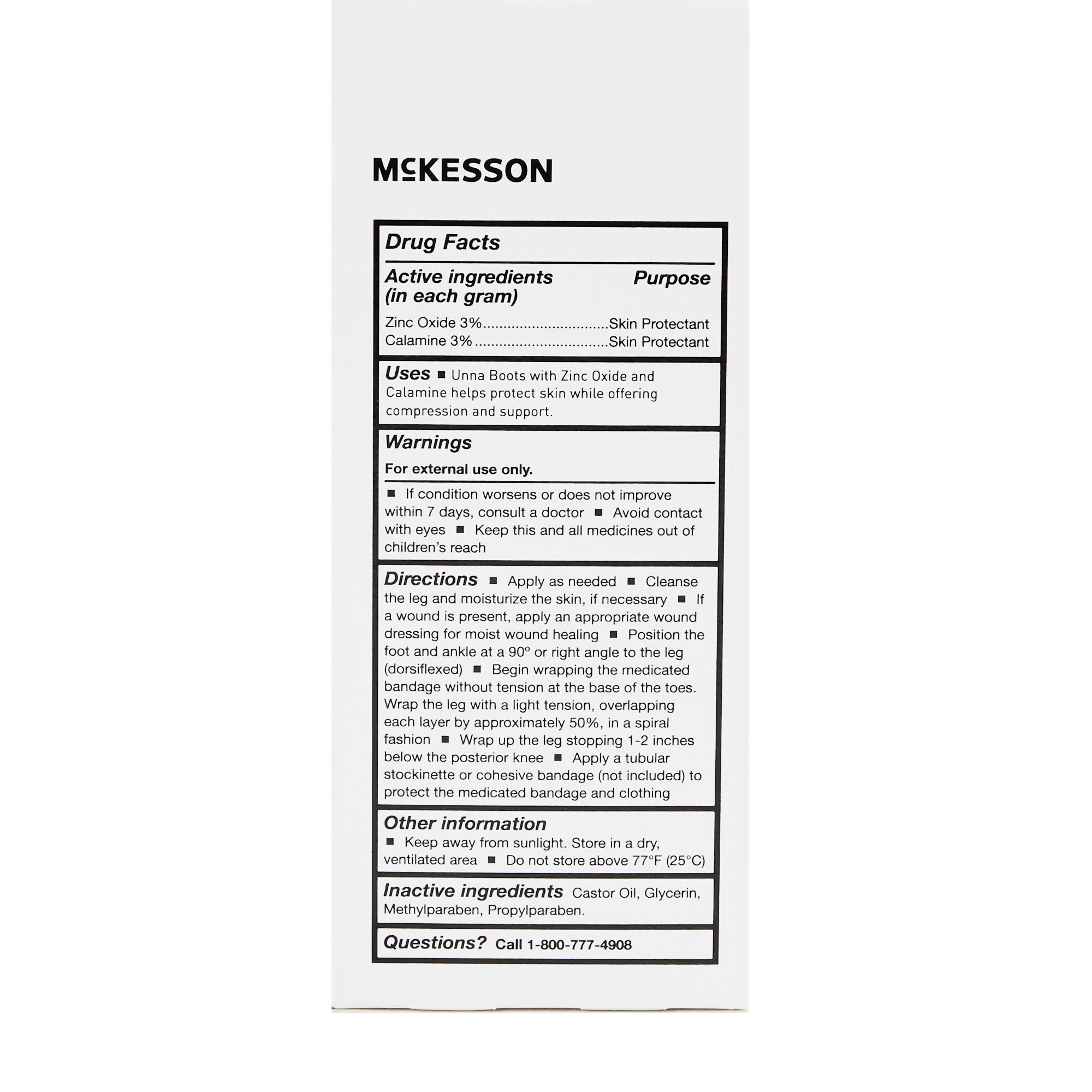 Treat leg ulcers and speed up healing with rolls of McKesson Unna Boot bandage. The soft cotton wrap fits easily and securely around the legs. The gauze in the McKesson Unna boot contains a non-hardening paste combining soothing calamine and nourishing zinc oxide. These work together to keep the ulcer moist and help it heal more quickly. A vacuum-sealed pouch preserves the paste’s moisture and offers easy opening.