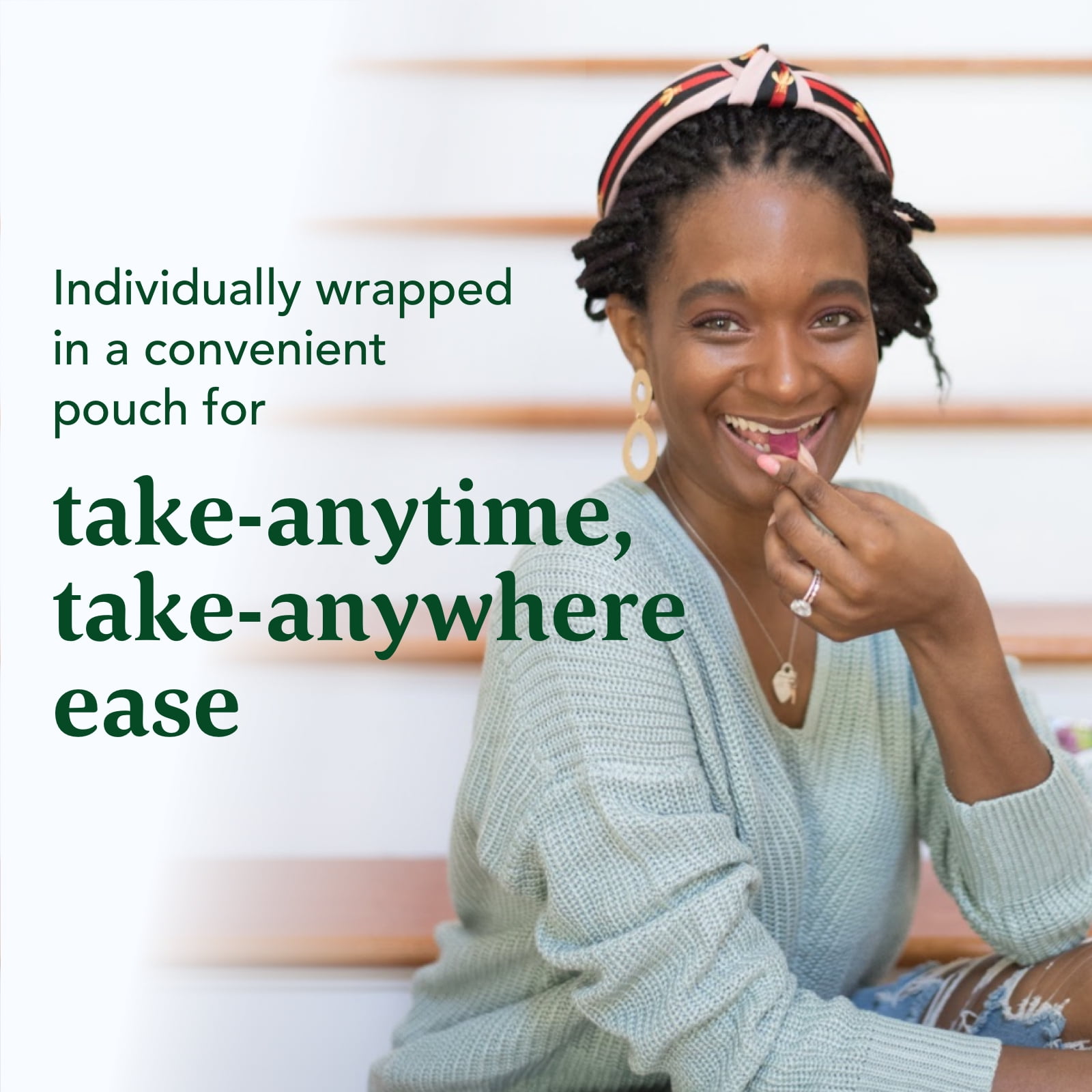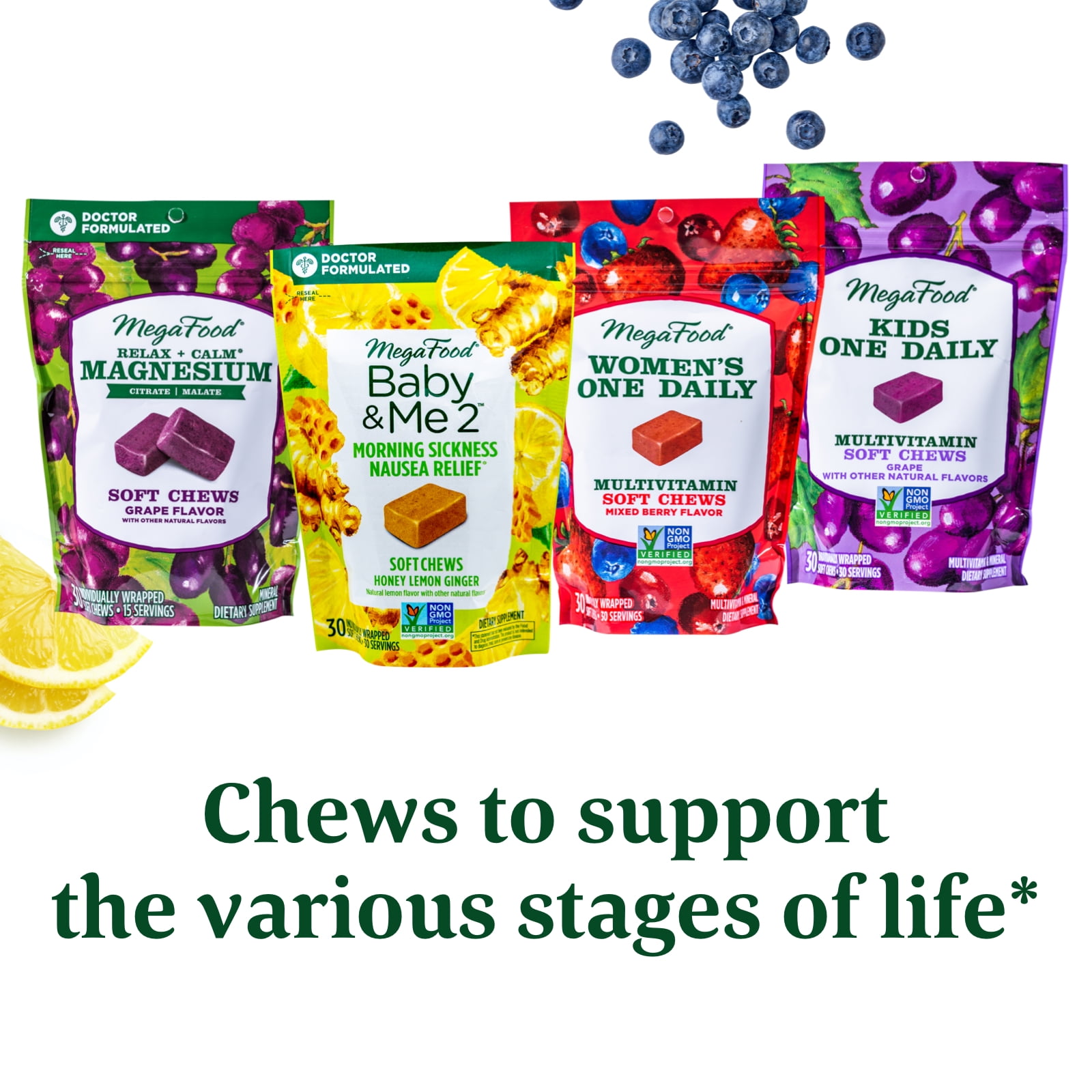MegaFood Relax + CalmMagnesium Chews were formulated by Tieraona Low Dog, M.D., our Chief Medical Advisor, award-winning physician and expert in dietary supplementation. Each chew includes a combination of magnesium citrate and malate forms known to be gentle and effective as they may help ease muscle tension and promote a sense of calm and relaxation.These magnesium chews are individually wrapped for convenience and offer a great-tasting alternative to tablets. Can be taken any time of day, even on an empty stomach.