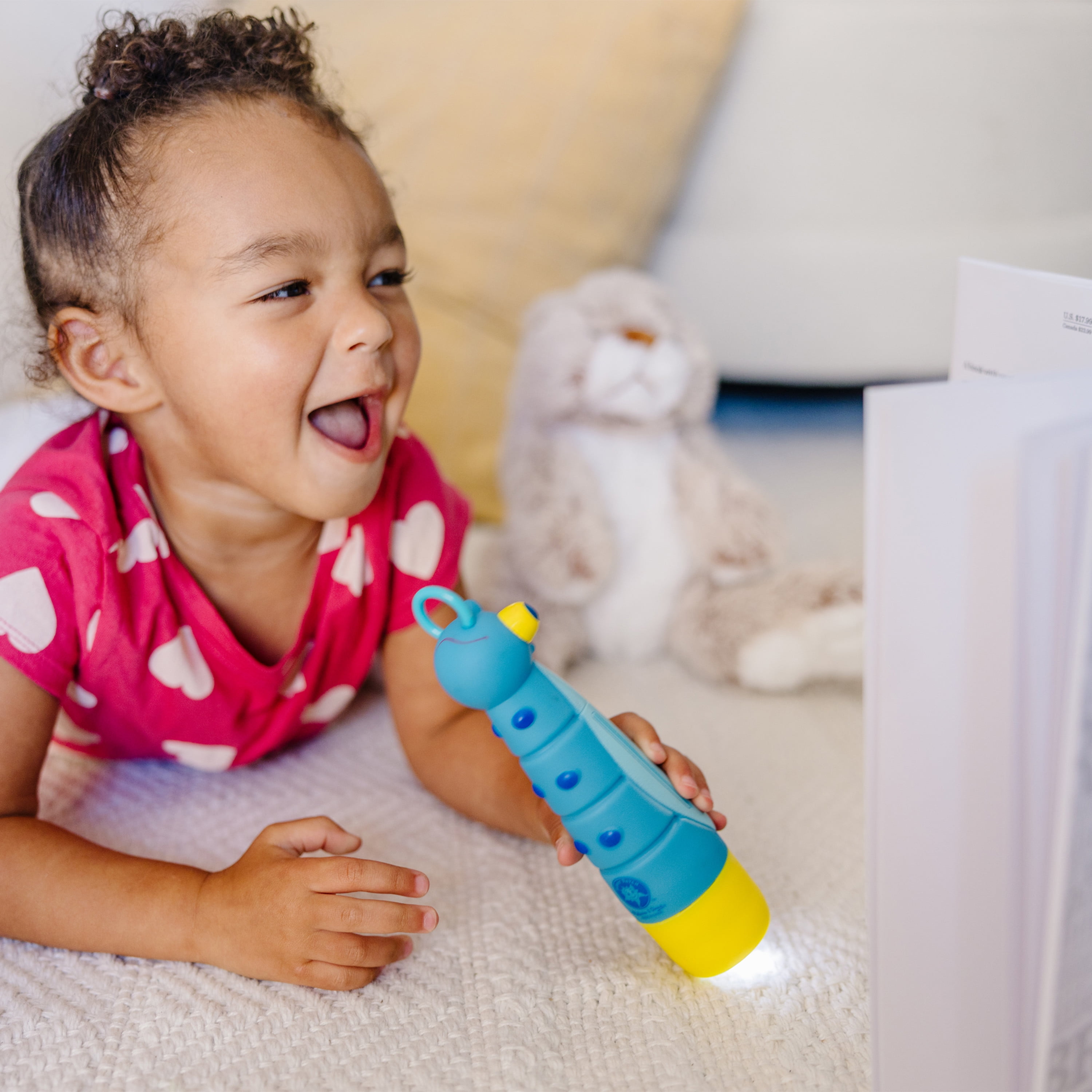 Flash Firefly knows a thing or two about lighting up the night! This durable, easy-to-grip flashlight will shine a light on many fantastic childhood activities. Whether your child is curled up with a book under the covers or running around the yard playing flashlight tag, this is the perfect accessory for adventure.