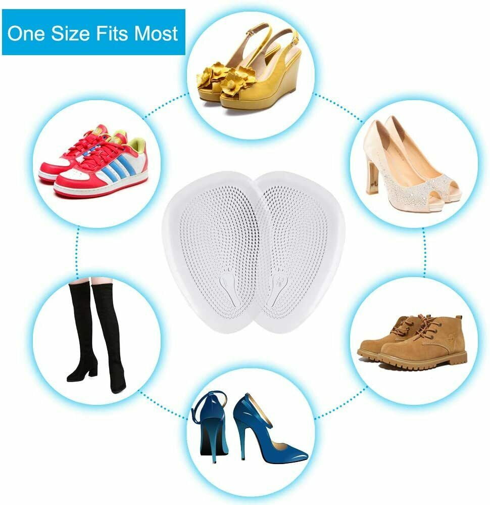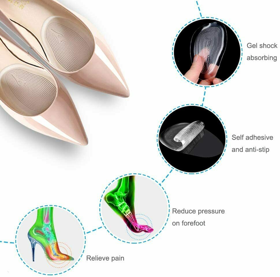 Ball Of Foot Cushions: 5 Pairs/10 Pack Metatarsal Gel Pads adhere to help relieve pain by put the pads to the inside of your shoes to provide cushioned support for the ball of your foot. Soft gel pads have plenty of air holes for additional ventilation,which help reduce feet swelling, pain and discomfort during the working day.Suitable for women and men.
