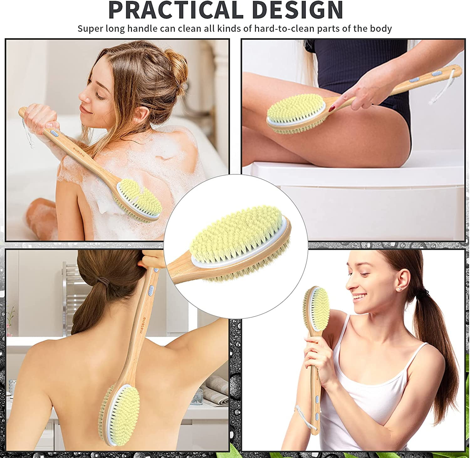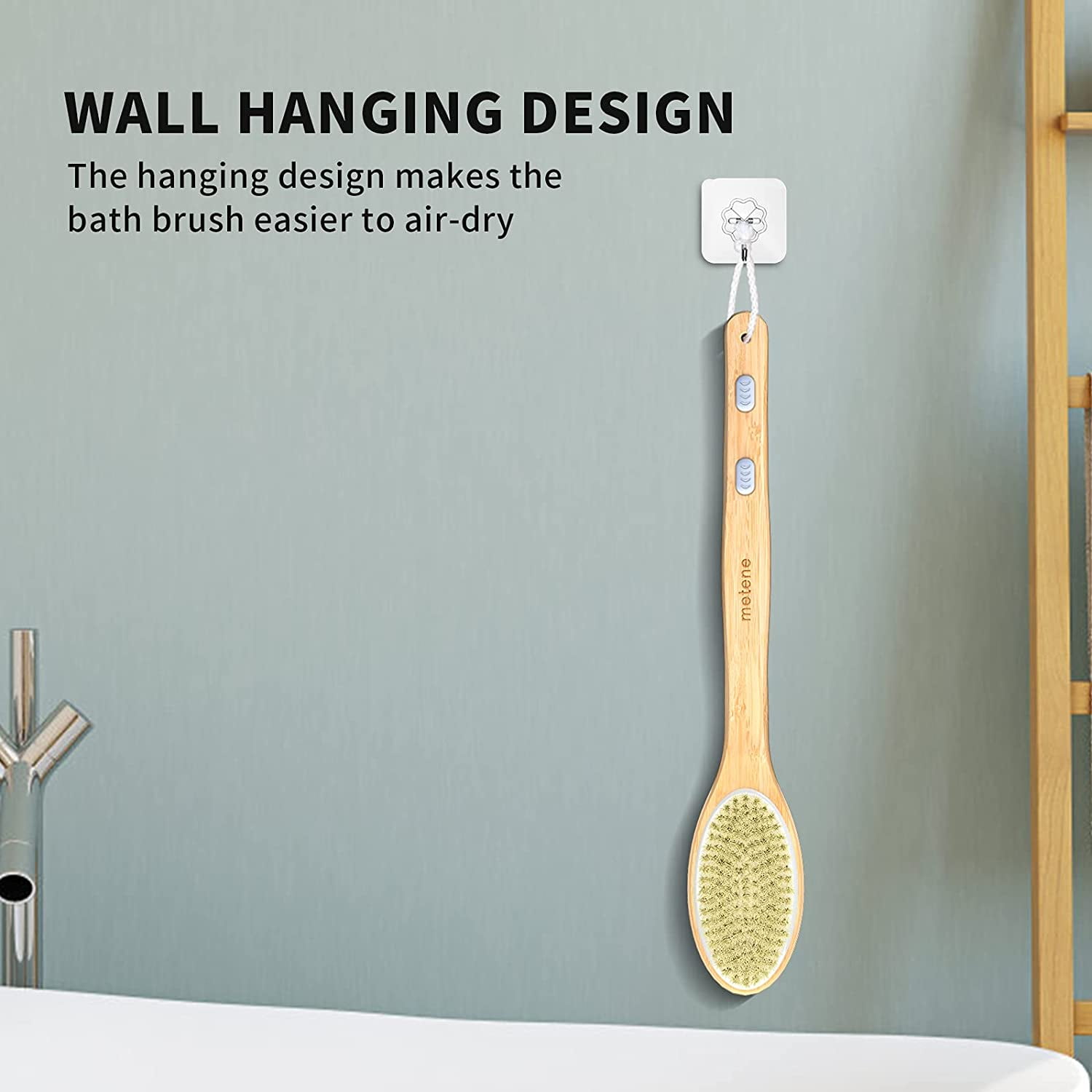 Metene Bamboo Shower Body Exfoliating Brush, Bath Back Cleaning Scrubber with Long Handle