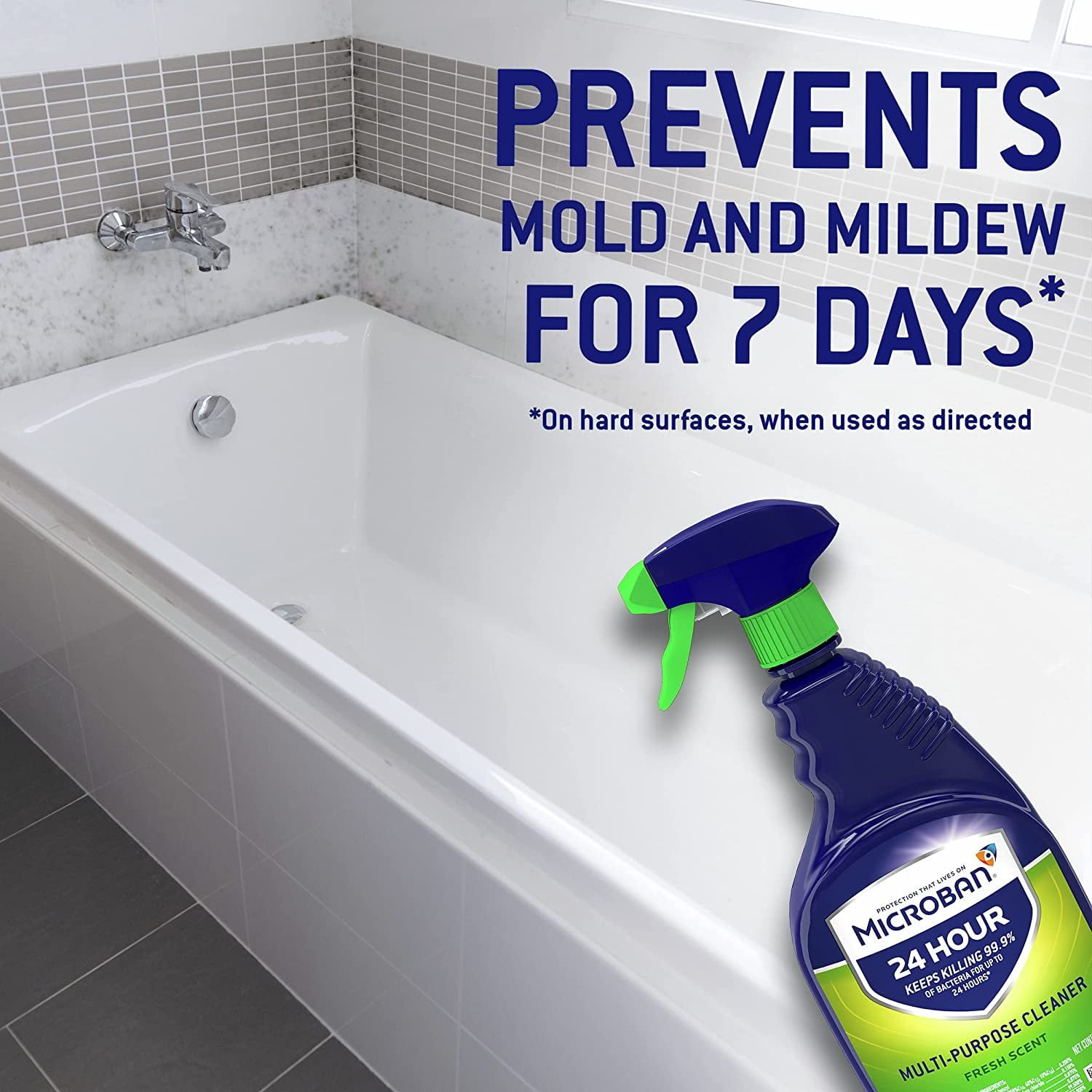 Microban 24 Hour Multi-Purpose Cleaning Spray keeps killing 99.9% of bacteria for up to 24 Hours, even after multiple touches, to support a clean and healthy home. This all-purpose sanitizing cleaner is great for every day messes and is suitable for use on all different types of non-food contact hard surfaces, like garbage cans, bathroom sinks, cabinets, etc. Use this multi-purpose spray for an efficient clean. Use around the home and on other high touch areas. This powerful formula penetrates soap scum and greasy soils while reducing odors. Let Microban protect you and your family from harmful germs for a healthy home. When used as directed Effective against S. aureus & E. Aerogenes +Effective against bacteria and viruses Human Coronavirus, Influenza A H1N1, RSV Respiratory Syncytial Virus ++ Effective against Aspergillus niger