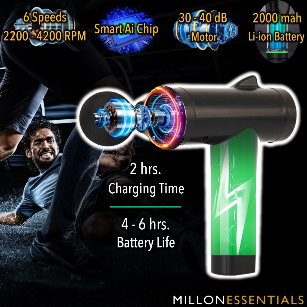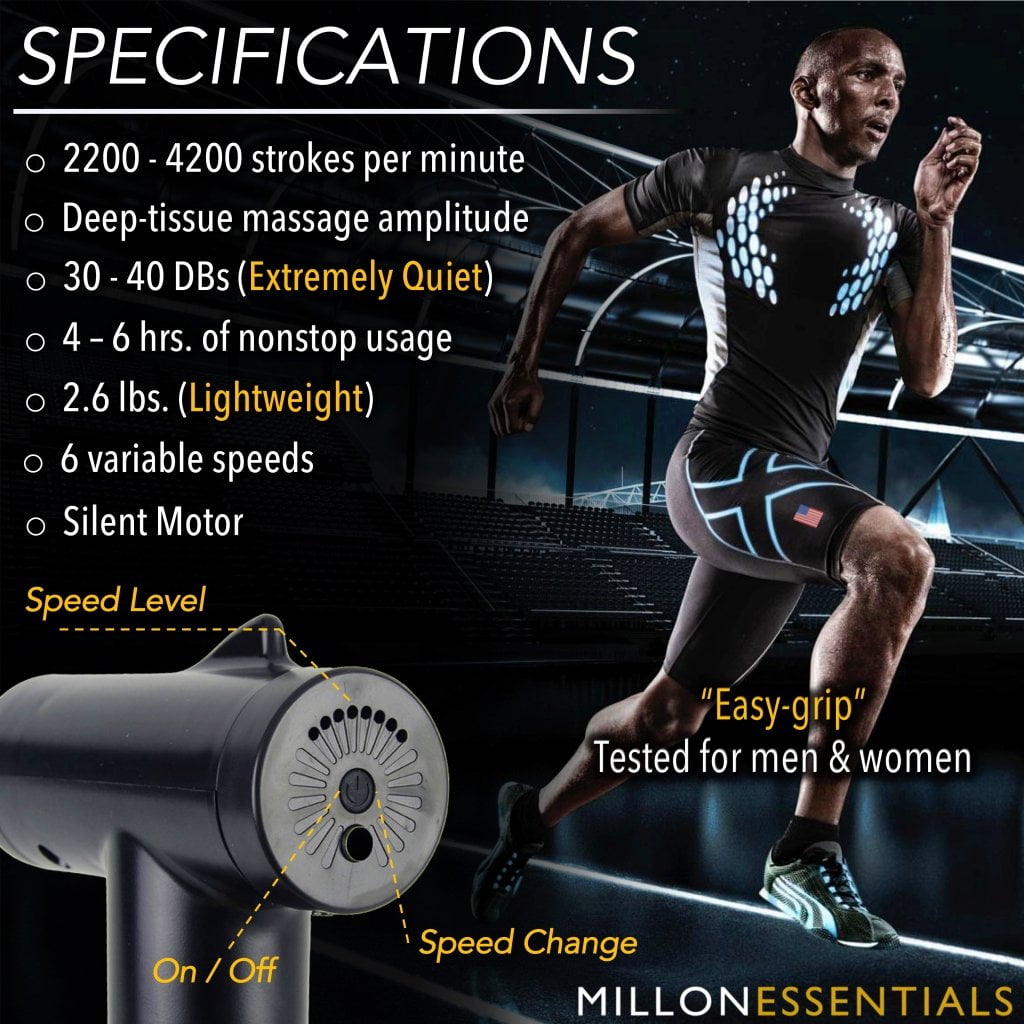 – OneTouch Technology: Features a power button that turns the massage gun ON and OFF, and cycles through the massage gun’s 6 speeds for an easier and more enjoyable experience.