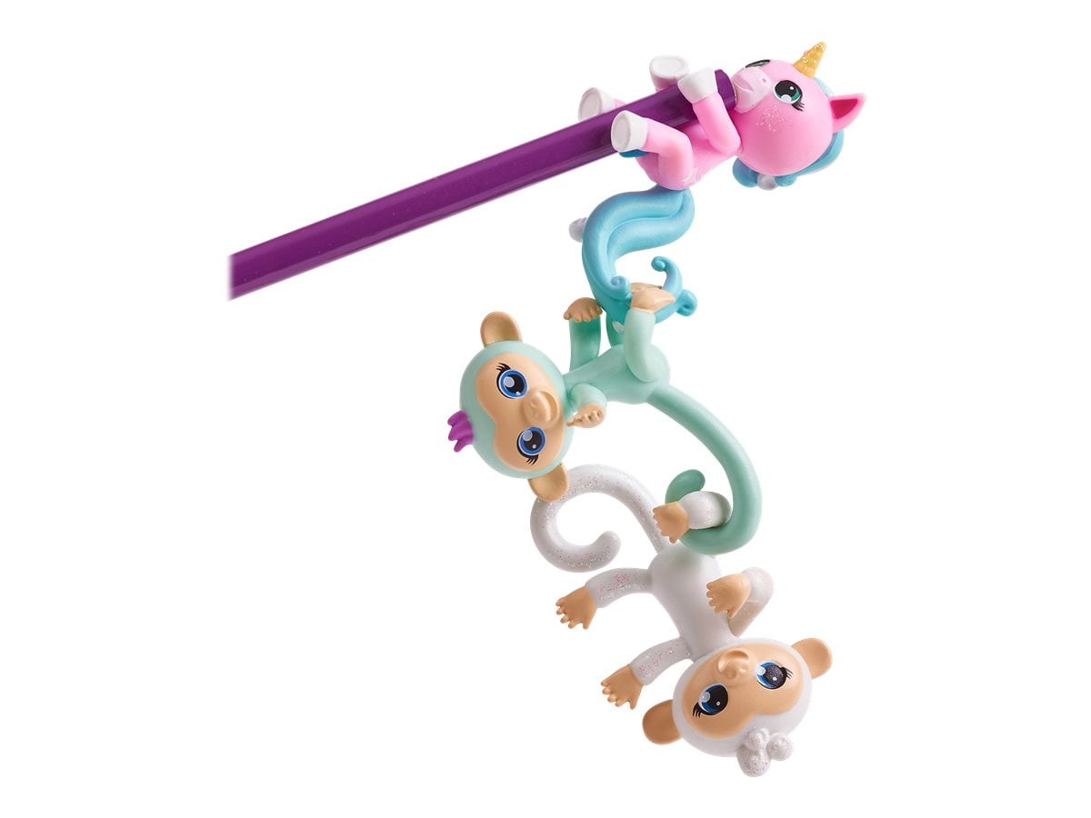 Each Mini Figure Fingerlings Mystery Pack contains one figurine, one tail charm and one bracelet. The newest addition to the WowWees Fingerlings line is this adorable mini. Open your blind bag to find popular, rare, ultra-rare and legendary figures, including either a surprise sloth, monkey or unicorn. Cute little counterparts to their bigger Fingerlings friends, these characters and accessories can be attached to the bracelet. Wear them on your wrist, or even top your pencils with the colorful creatures. Collect all the Fingerlings minis and trade them with friends for extra fun. These packs make ideal birthday party take-home gifts. Mini Figure Fingerlings Mystery Pack: – 1 mini Fingerling blind pack – Rare action figures – Each pack includes one figure, one tail charm and one bracelet – Figure and accessory hook onto bracelet – Collect them all and trade with friendsMini Figure Fingerlings Mystery Pack