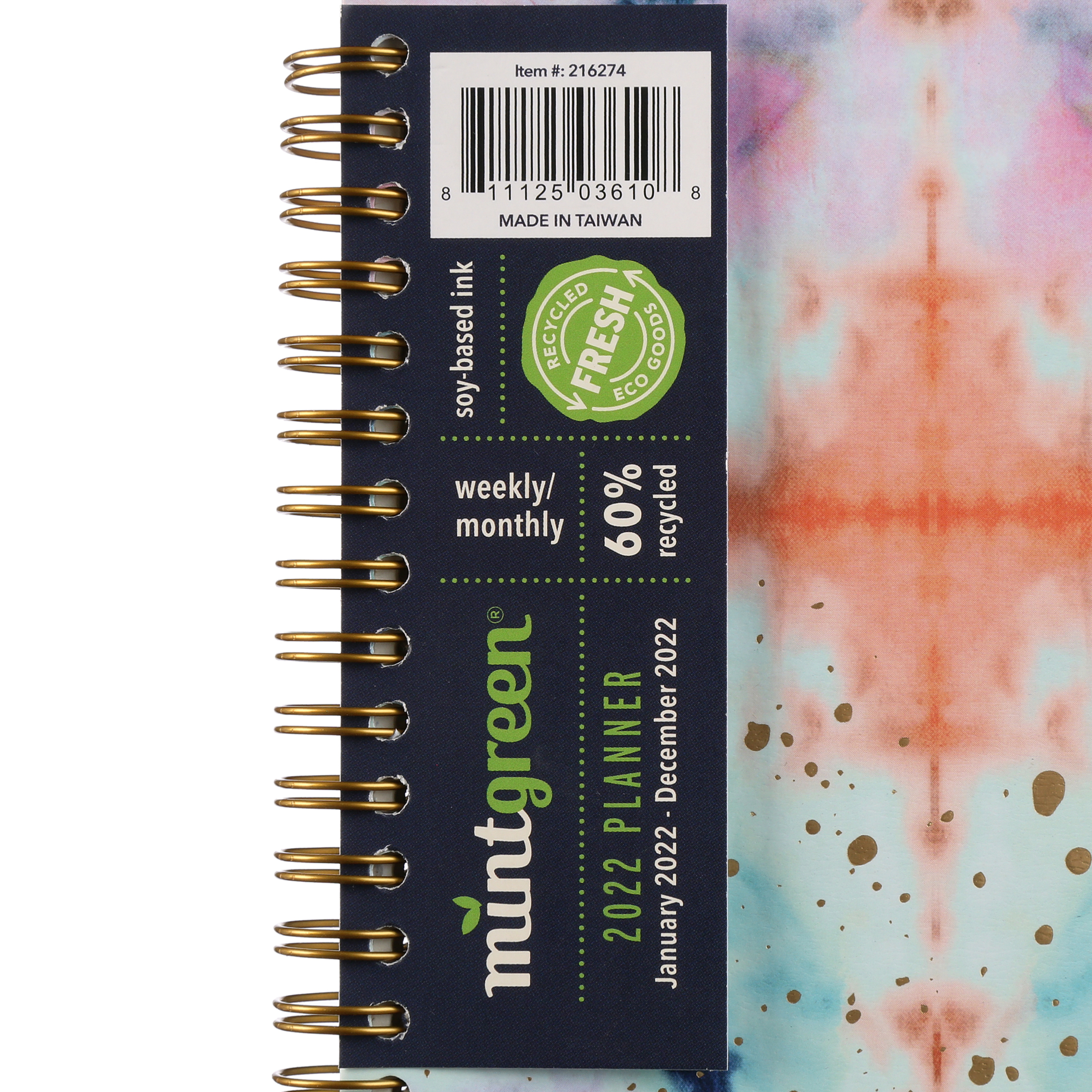 Plan your week, month or year and keep all important activities noted with the Mintgreen 2022 Weekly Monthly Planner. This planner has a hardcover with foil stamping and spiral binding. The pages are printed with soy-based ink and are made from 60% recycled FSC certified paper, making it eco-friendly. The color-coded pages for each month make it easy to flip to the date you need. This planner also has space to write important dates like birthdays, contacts, and plenty of room in the back to jot down extra notes. The planner is dated January-December 2022. Keeping your schedule organized is easy with this Mintgreen Large Spiral Planner!