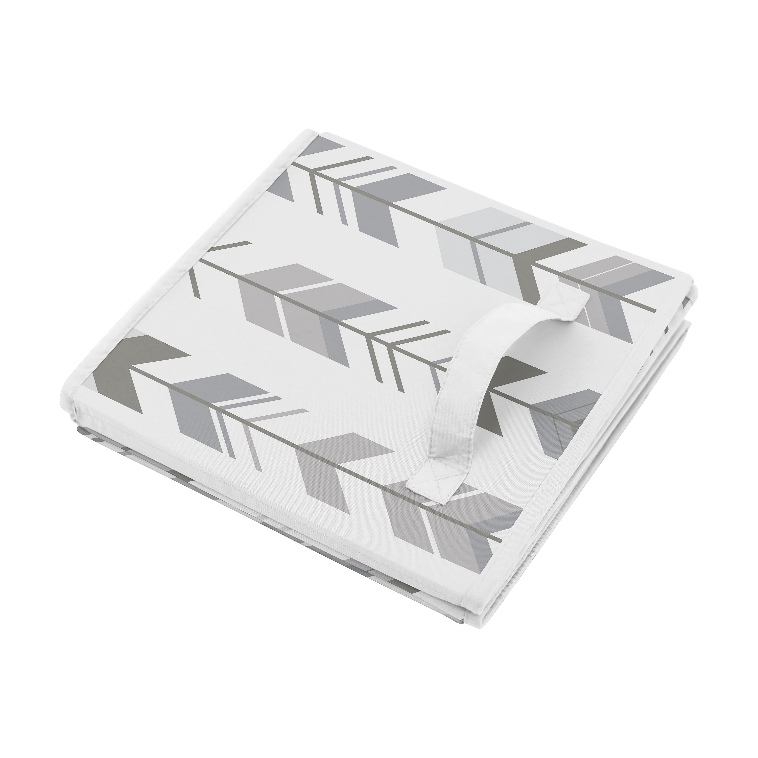 - Features a grey and white woodland arrow print