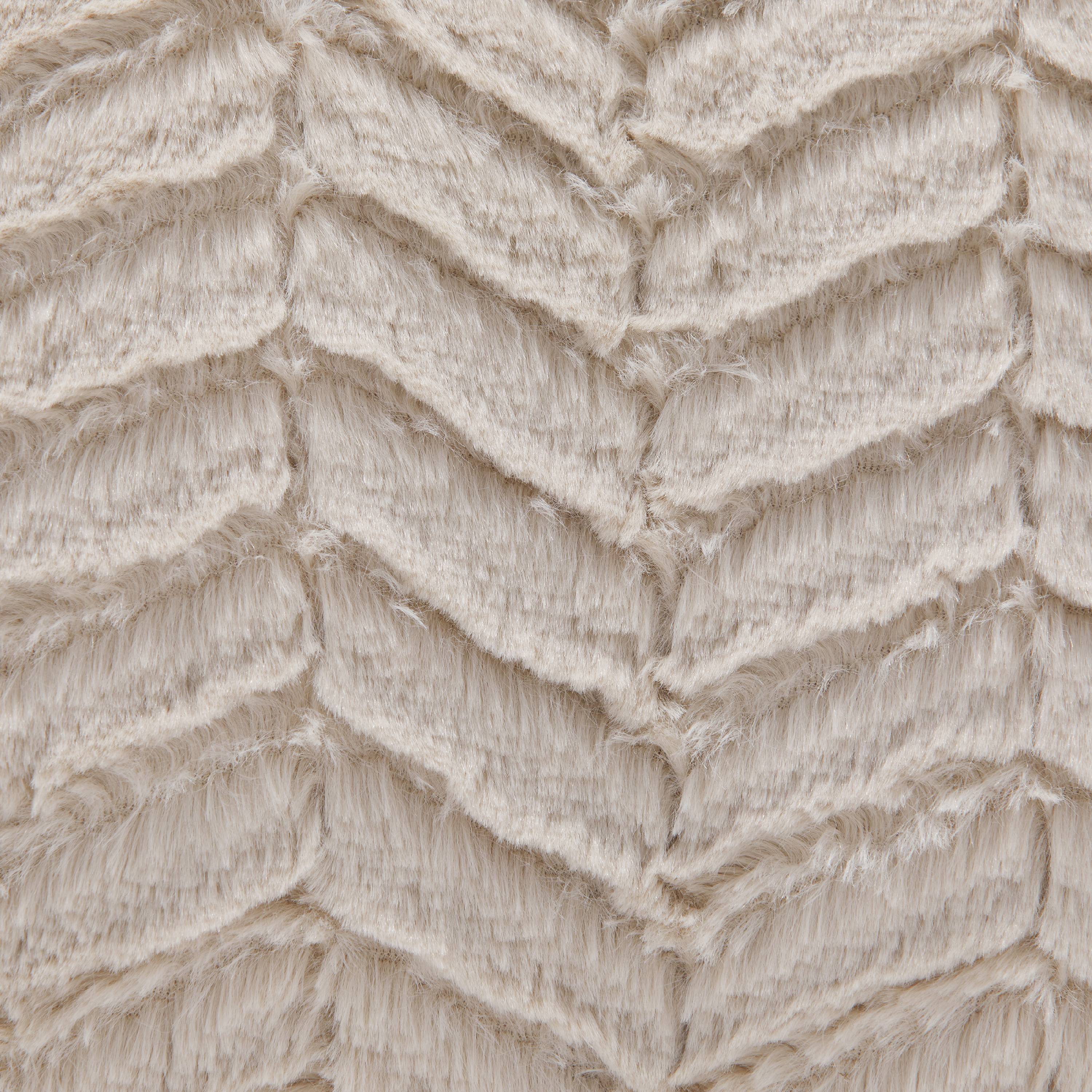 Sumptuous fabric and a fetching motif combine to produce the covetable MoDRN Neo Luxury Chevron Faux Fur Decorative Throw Pillow. Its polyester faux fur outer offers a feeling of luxury while its textural chevron pattern provides a little playful edge. With its textural appeal, intriguing motif, and cool neutral hue, this pillow capitalizes on the best qualities of modern home design. Style it with plush throws and bold accents for a space that’s at once becoming and inviting.