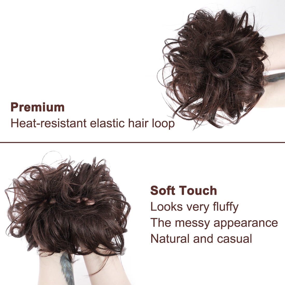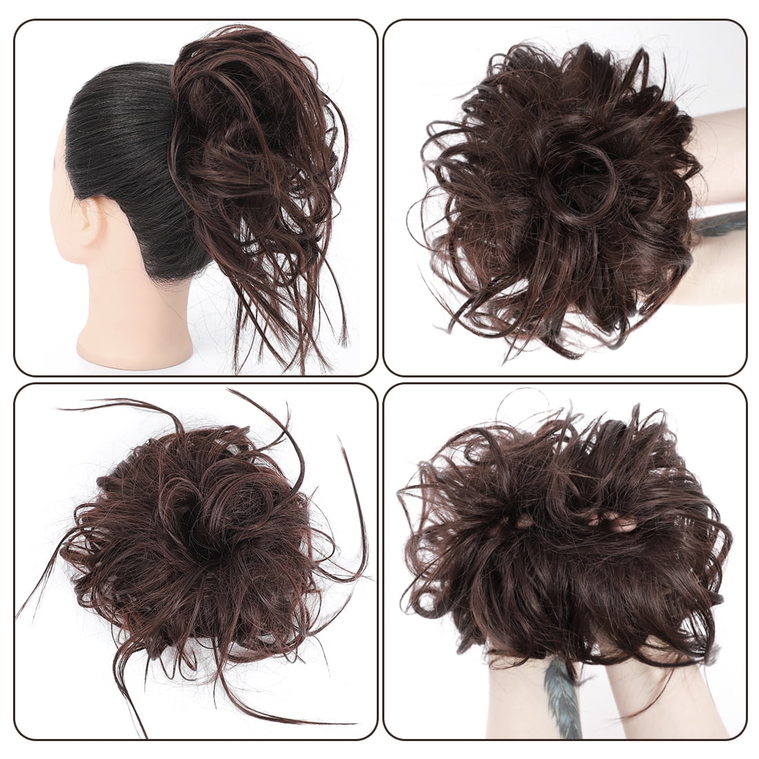 - Material – Made by 100% high quality Synthetic fiber, it looks, moves and feels like real hair with affordable price. Adjustable Size – Messy Bun can adjust size and easy to wear with light combs at both sides, fit most bun and ponytail, and uneasy to discover or fall.