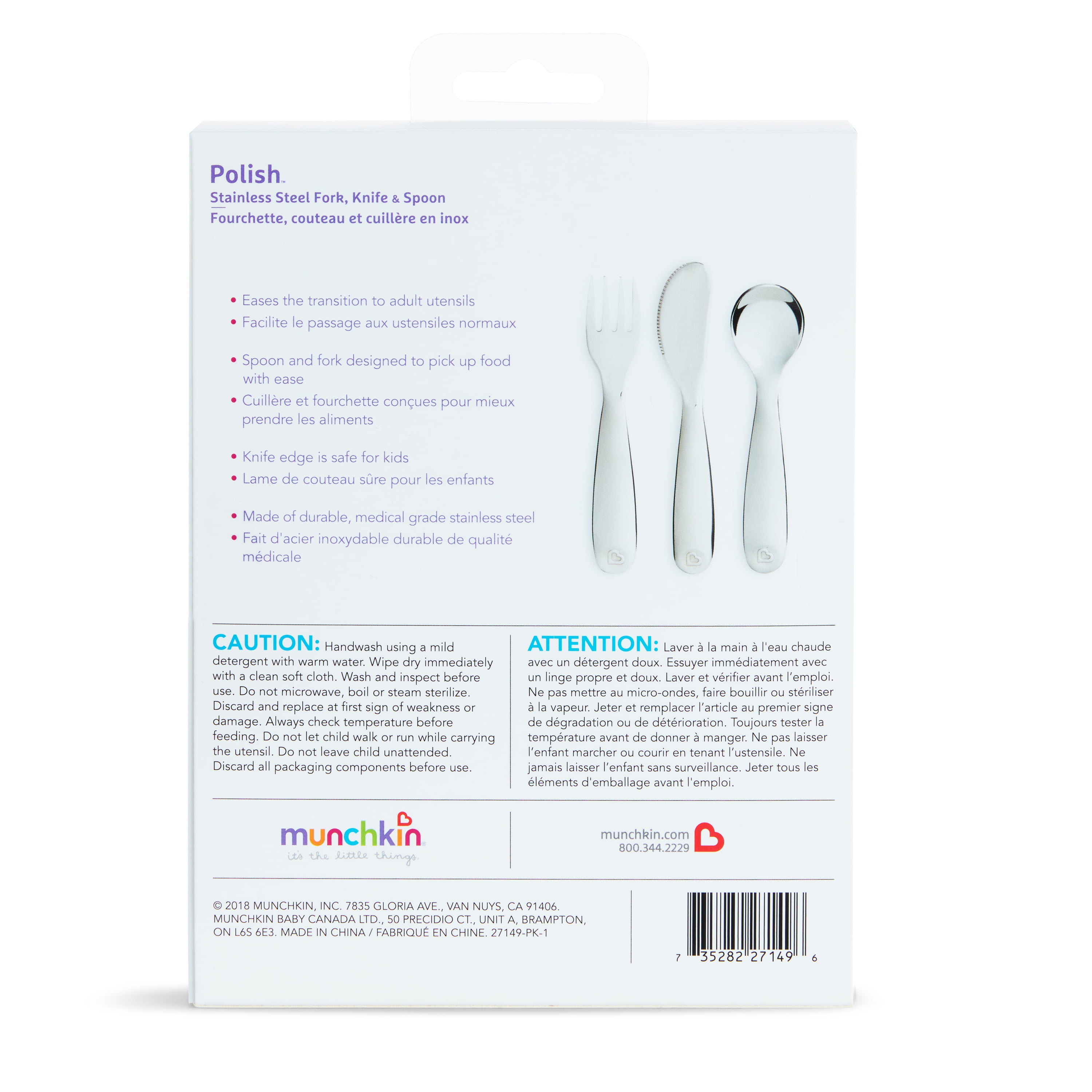 Munchkin Polish Toddler Fork, Knife and Spoon Utensil Set, Stainless Steel