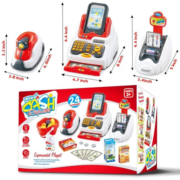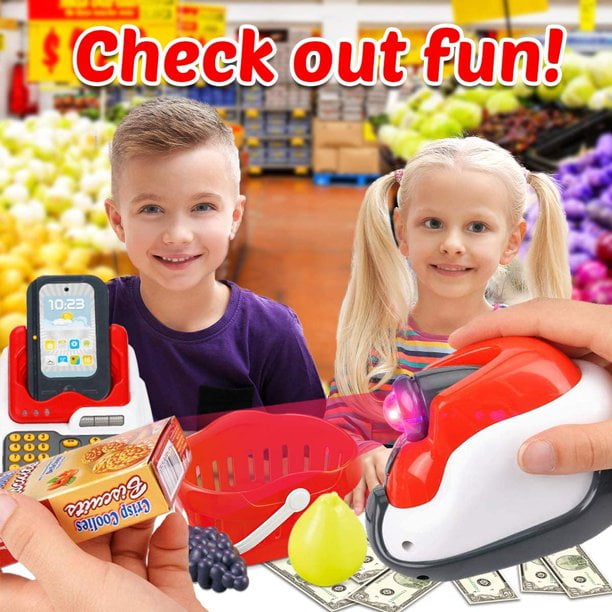 Mundo Toys Play Cash Register Toys for Kids – Learning Toy Money Pretend Play Set Scanner Credit Reader Preschool Learning for Toddler Girls Boys Age 3 4 5 6 7+
