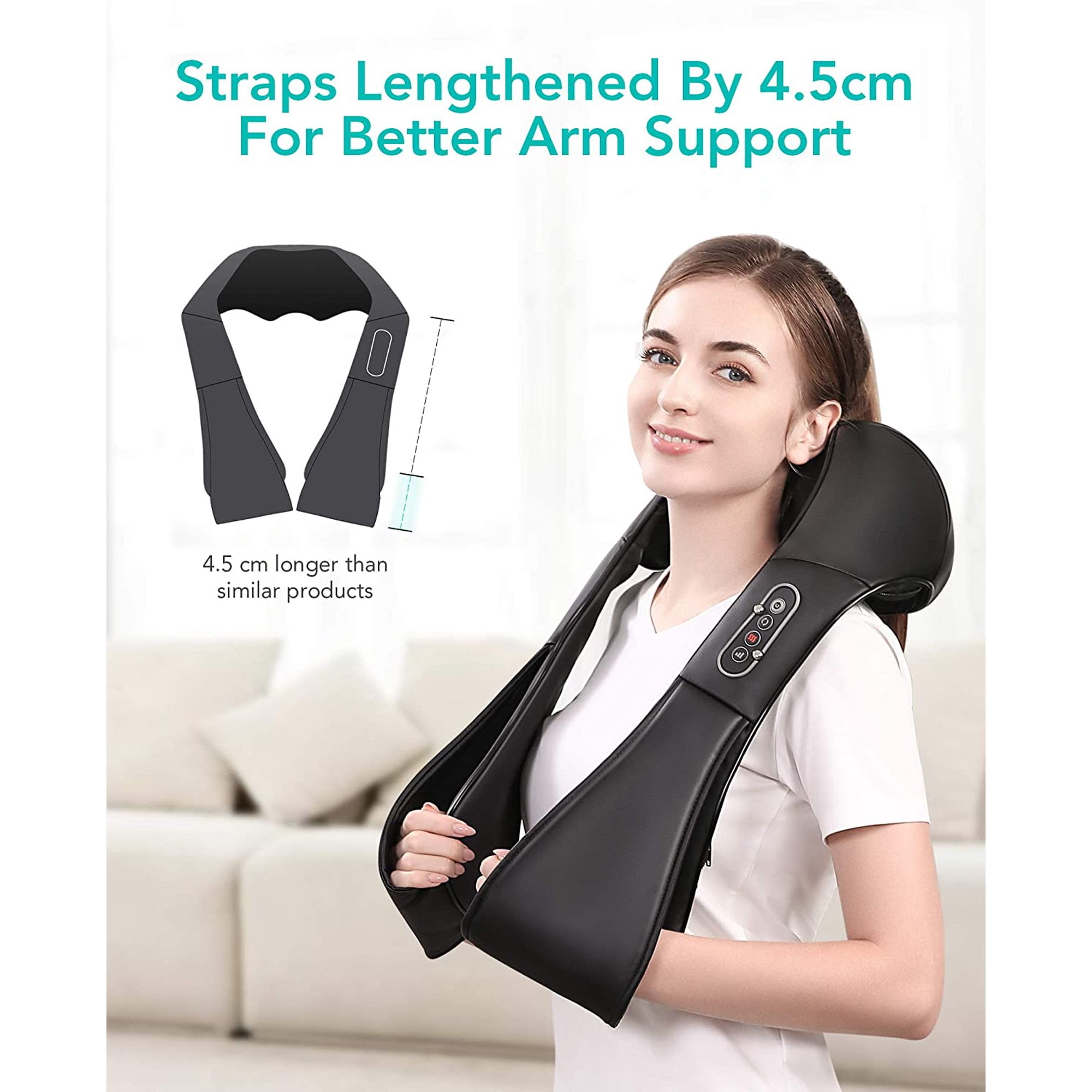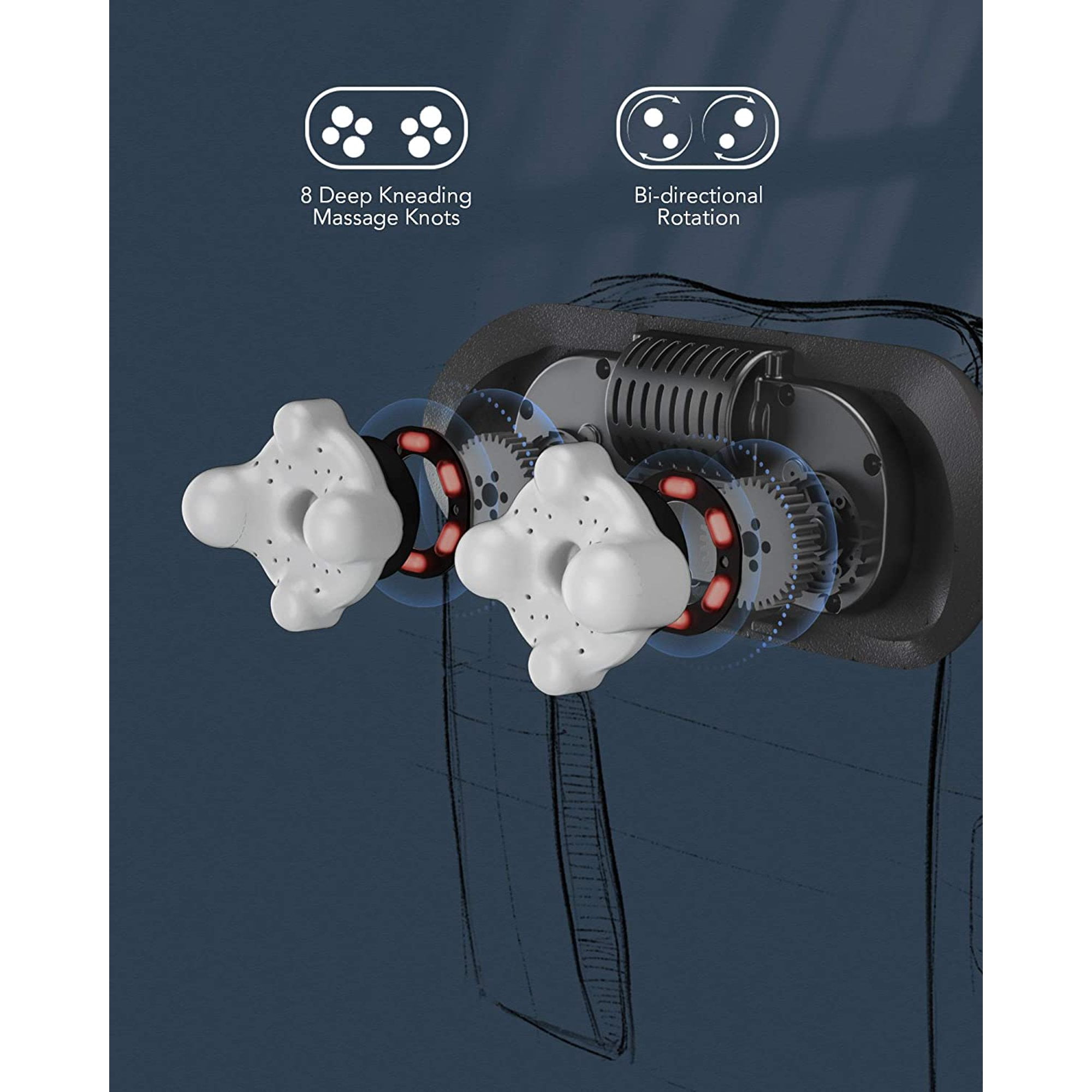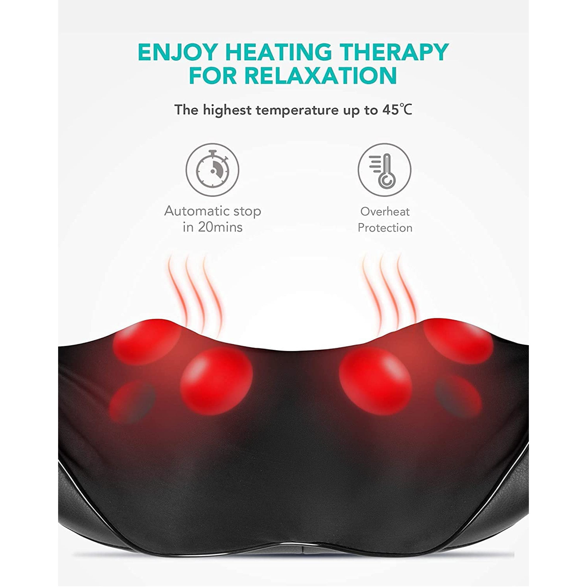 2. The neck and back massager features 8 deep-kneading Shiatsu massage nodes to soothe tiredness and relieve muscle tightness.