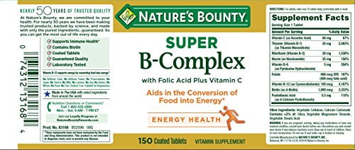 Nature’s Bounty B-Complex with Folic Acid Plus Vitamin C, Tablets 150 ea
