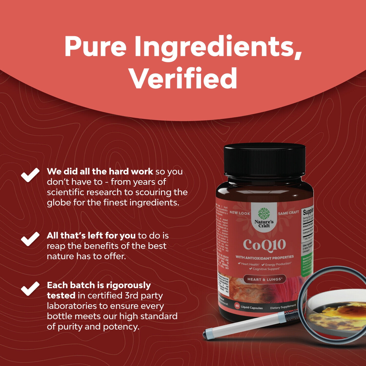 Remember: At Nature’s Craft, we use only the purest, most potent and high-quality ingredients available in our versatile CoQ10 Supplement. We do this because we want our products to work for you time and again. We want you to be a customer for life!