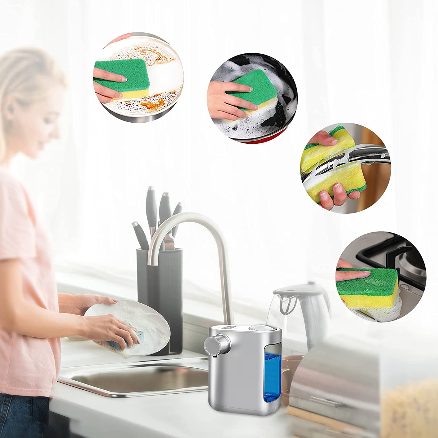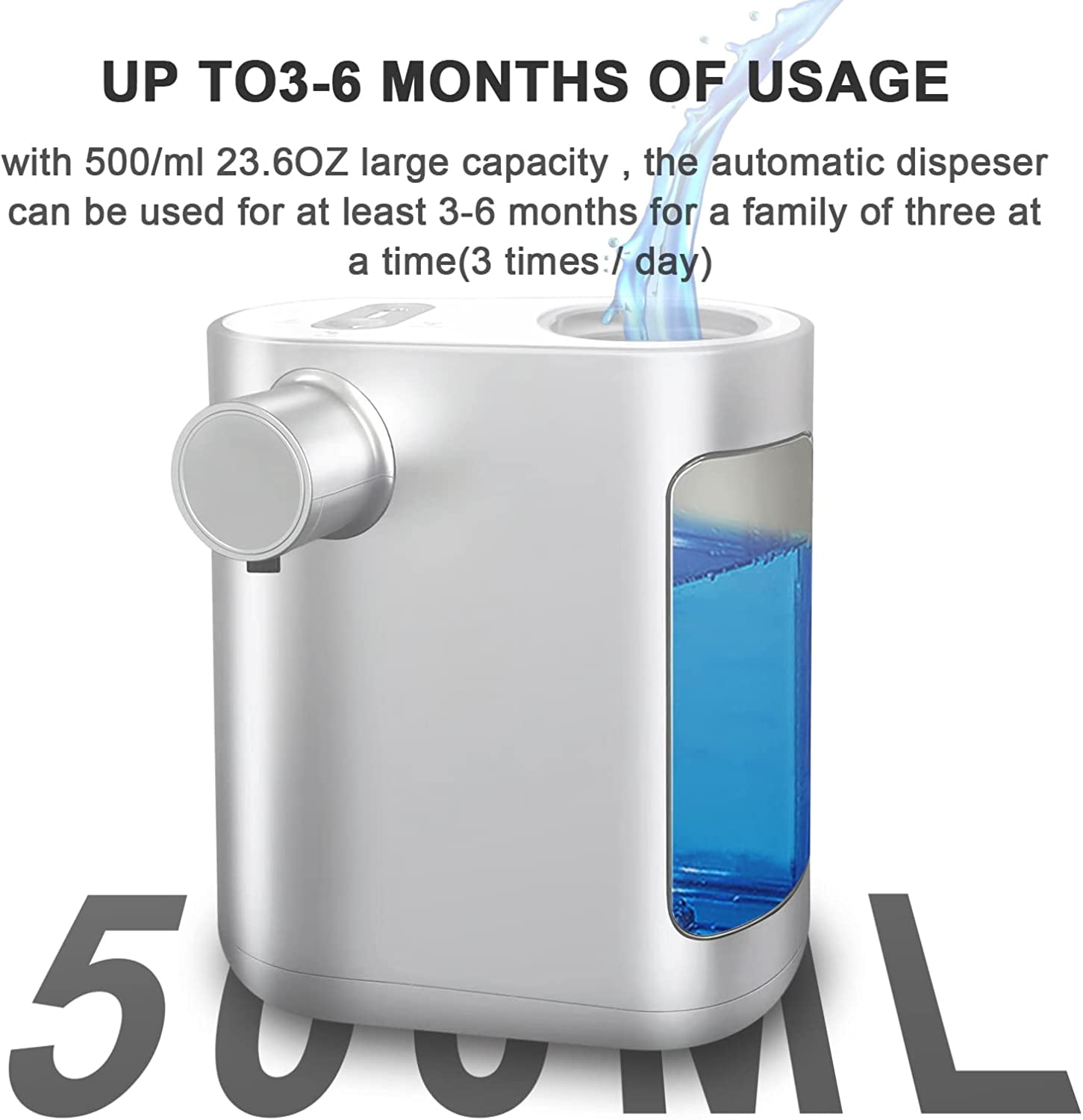 Non-Contact Liquid Automatic Soap Dispenser, 500ml, Rechargeable, 2000mA Built-in Battery with 3 Variable Dispense Volume Controls for Home Kitchen, Hotel, Office