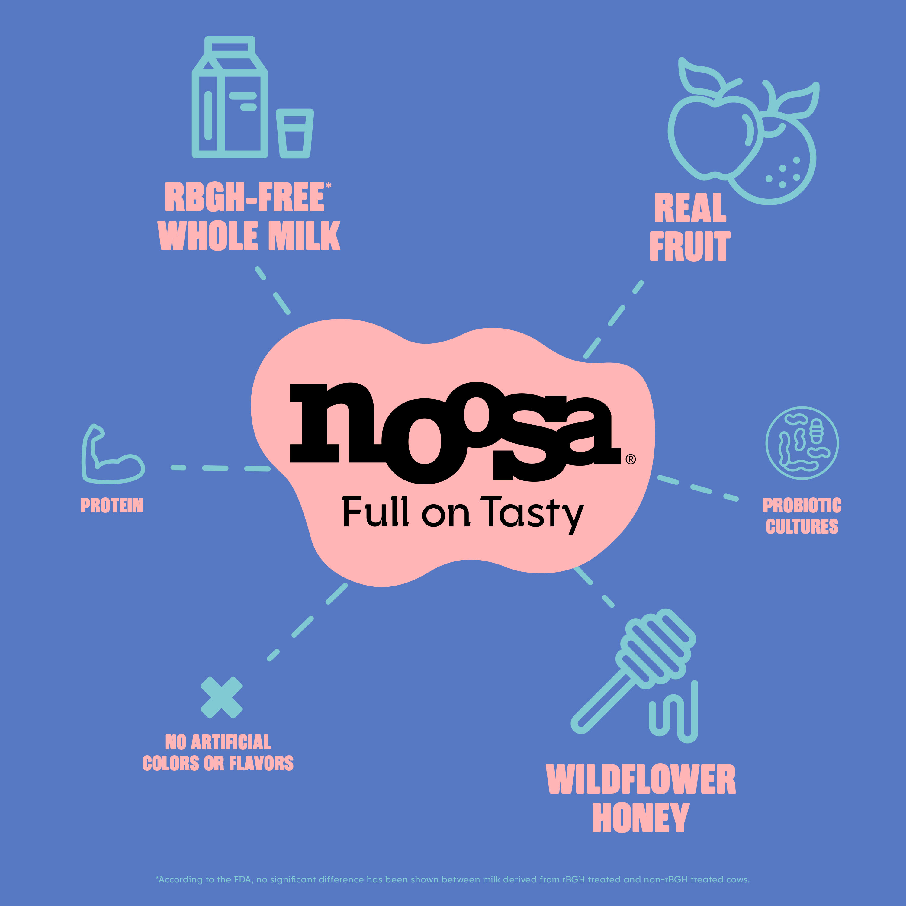 When it comes to snacking, Noosa blueberry yogurt offers a full depth of flavor that’s tough to beat, and you can enjoy it anytime. Our whole milk yogurt is off the charts in yum; we pack 70 wild blueberries into every tub! Sweet, juicy blueberries are hidden beneath luscious, creamy yogurt for satisfaction in every spoonful. Noosa blueberry yogurt is made with rbGH-free, Grade A whole milk from happy Colorado cows, sweetened with a touch of wildflower honey, and finished with fresh, juicy blueberries. This is how the magic of Noosa Yogurt is created. This full fat yogurt is packed with tons of flavor and has 6g of protein. Noosa whole milk yogurt is also gluten-free, made with live and active cultures and wholesome ingredients. This blueberry Noosa Yogurt comes in a convenient 4 oz size 4 pk, offering just the right amount to have with breakfast, curb your hunger between meals, or satisfy your sweet tooth. Grab a spoon and try it for yourself; tasting is believing.