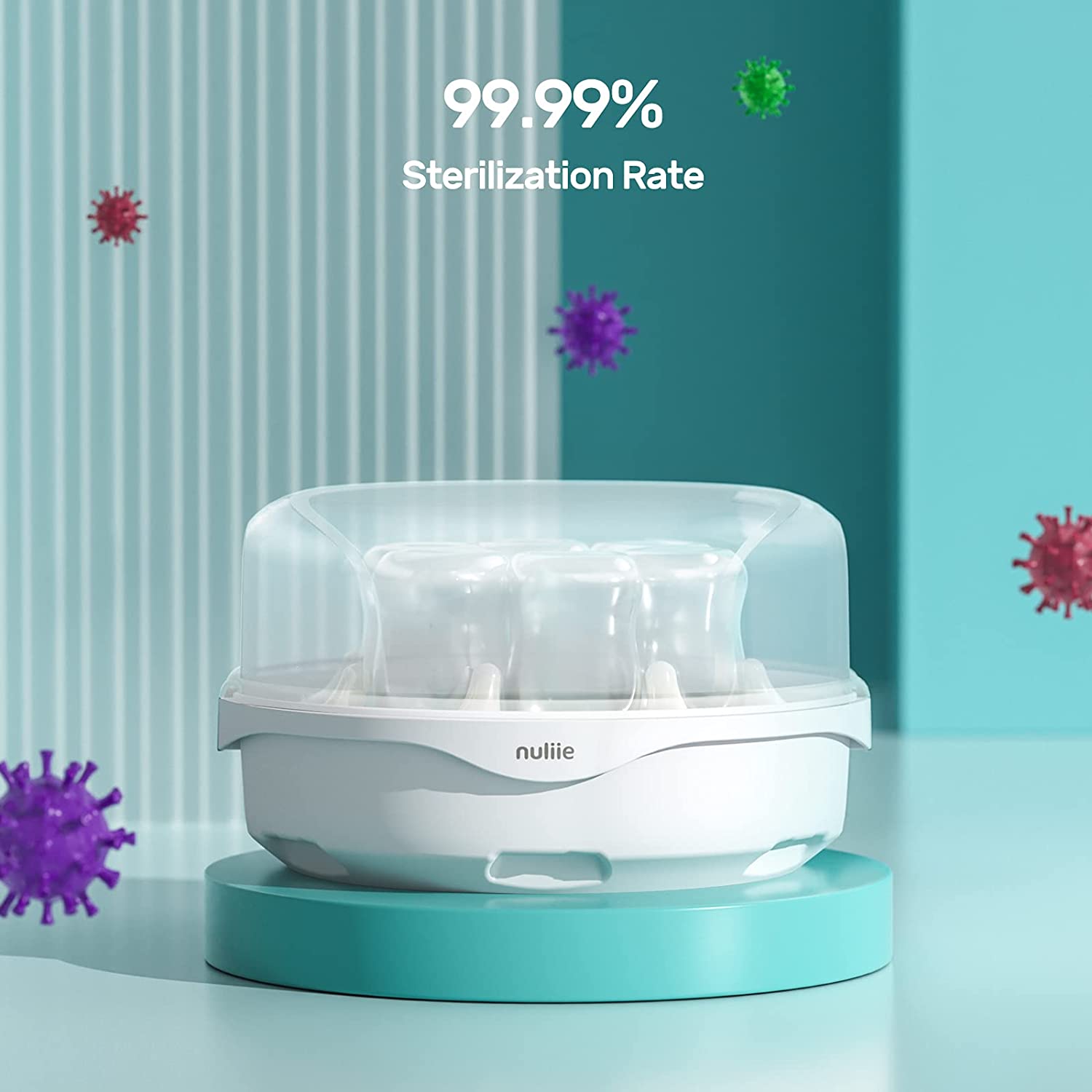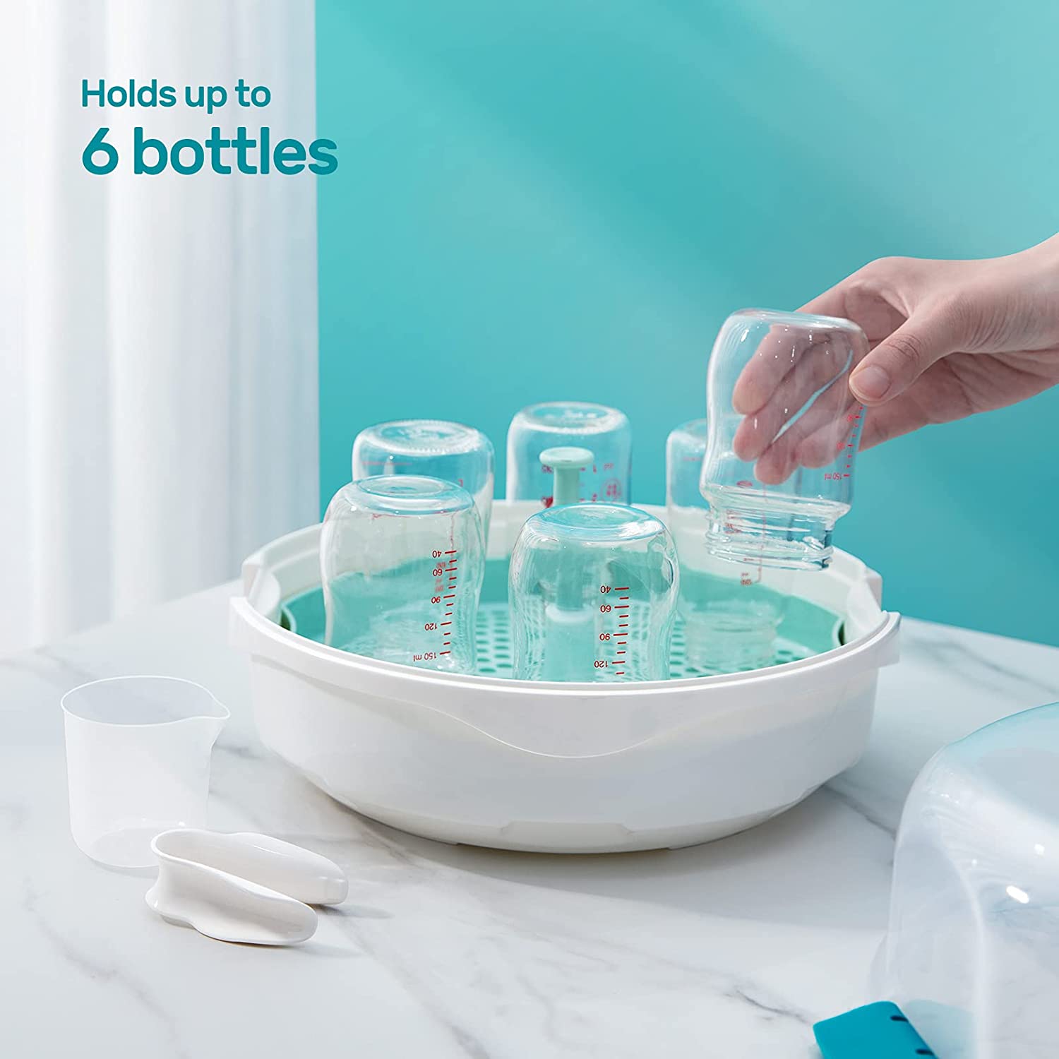 Nuliie Microwave Steam Sterilizer, Sterilizing 6 Bottles in 2 Mins, Bottle Sterilizer for Babies with a Clamp, Green