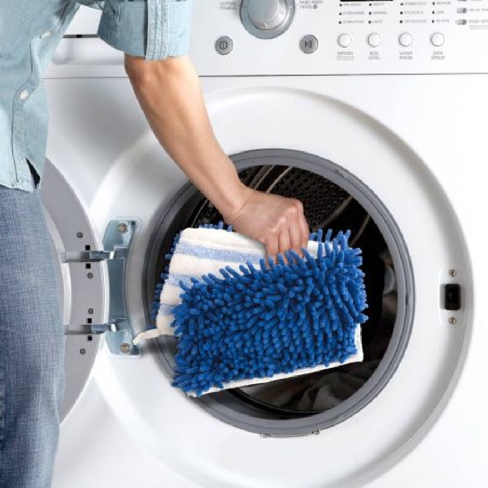 - Double sided head with microfiber and chenille – Blue chenille is great for pet hair pickup and sweeping – White Microfiber side has scrubbing strips for deep cleaning