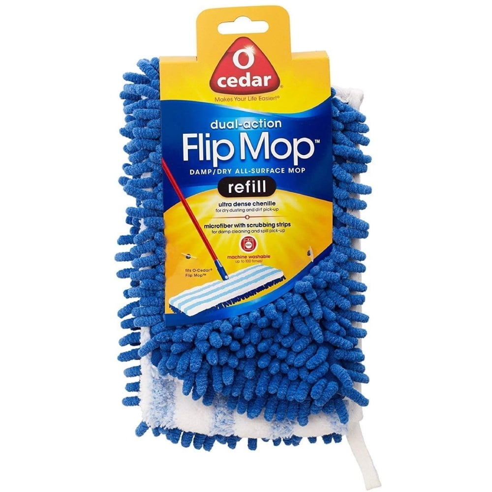 This flip mop features a double sided microfiber head with chenille for wet and dry cleaning. The blue chenille side is great for pet hair pickup and sweeping, while the white microfiber side has scrubbing strips for deep cleaning. Rotates 360 degrees for easy cleaning and is compatible with the Microfiber Dual-Action Flip Mop. Works great for hardwood floor cleaning and other surfaces like linoleum and tile.