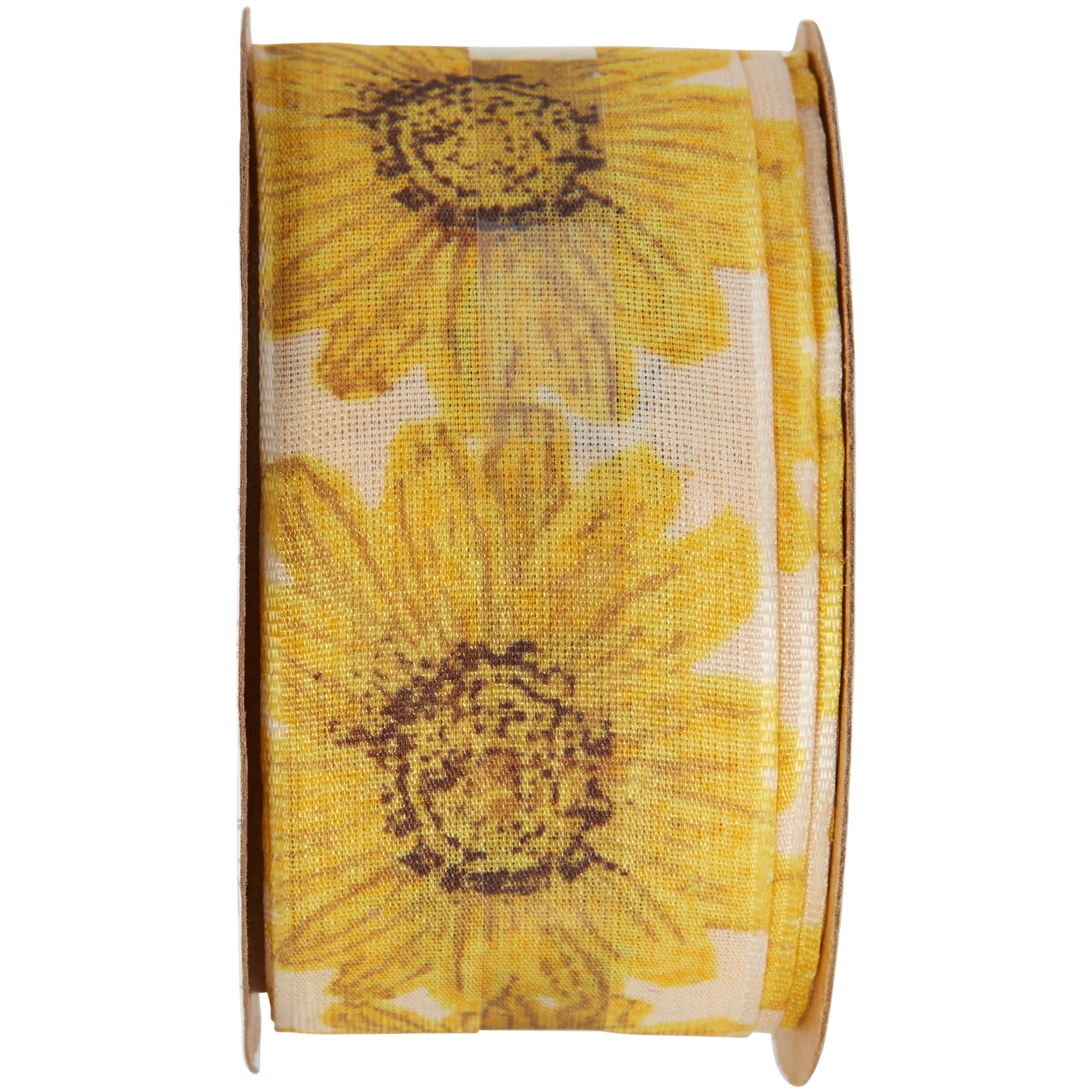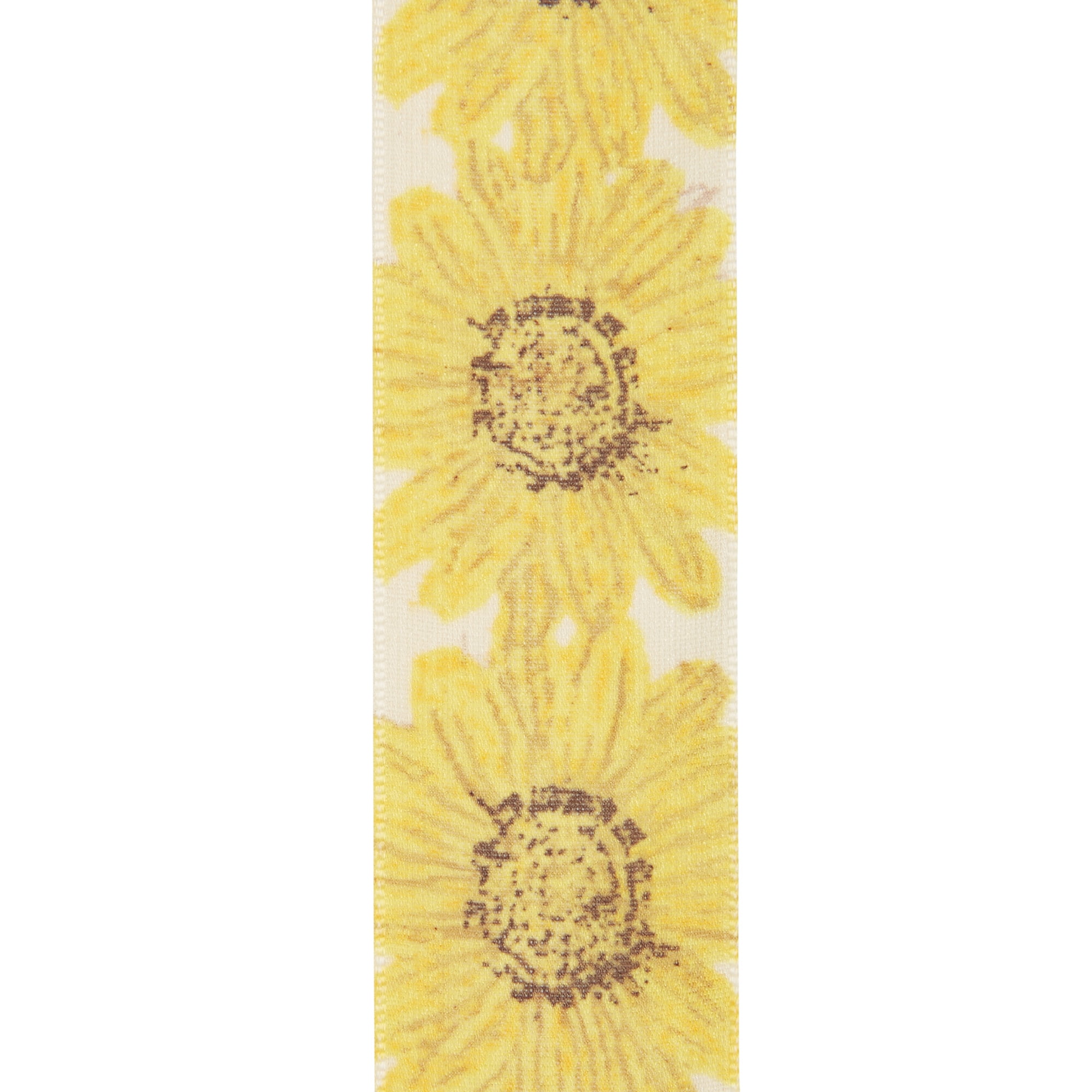 Offray Ribbon, Ivory 1 1/2 inch Sunflower Woven Ribbon for Sewing, Crafts, and Gifting, 9 feet, 1 Each: