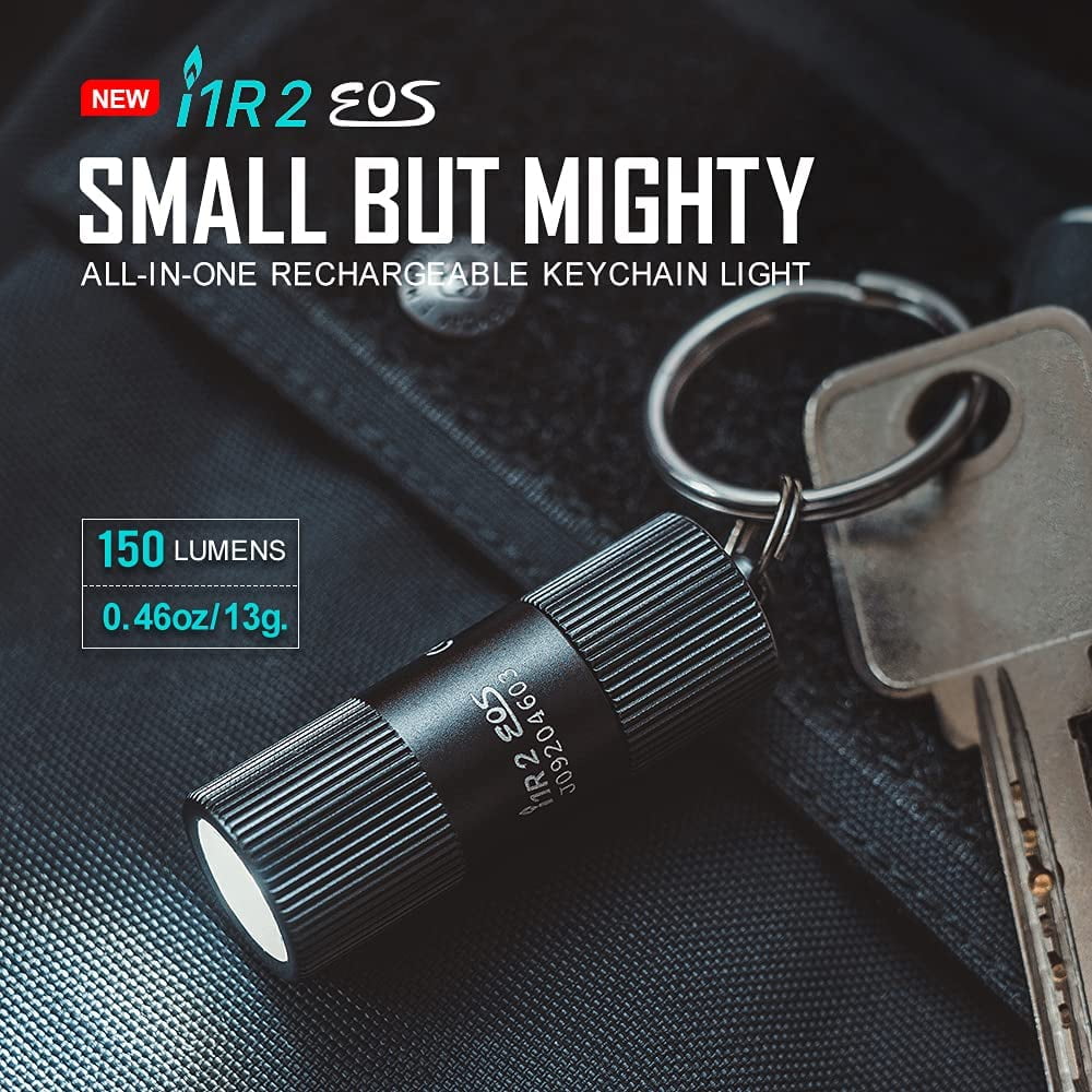 OLIGHT i1R 2 EOS 150 Lumens Tiny Rechargeable Keychain Flashlight EDC Mini LED Keyring Light with Built-in Battery for Camping Hiking Dog Walking etc