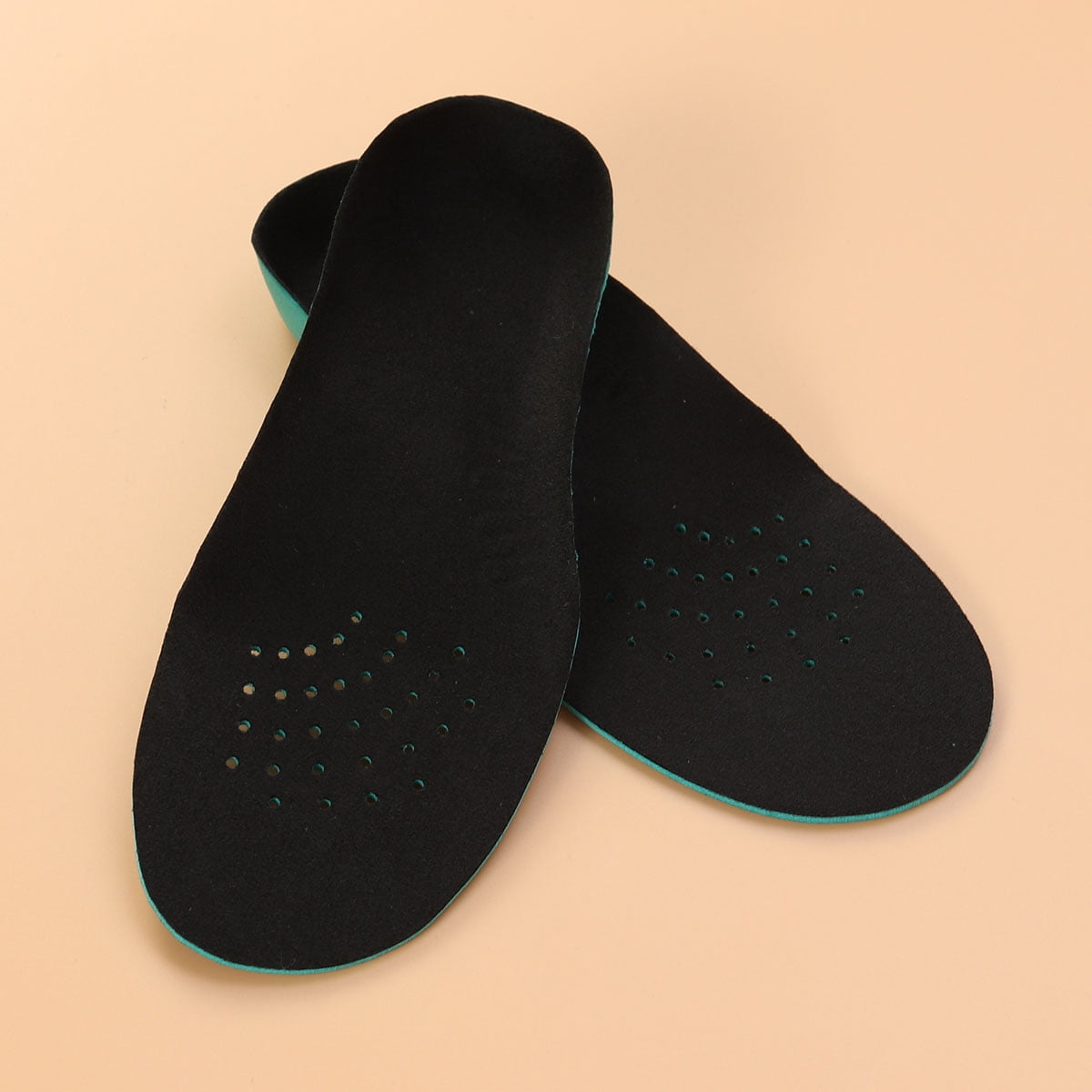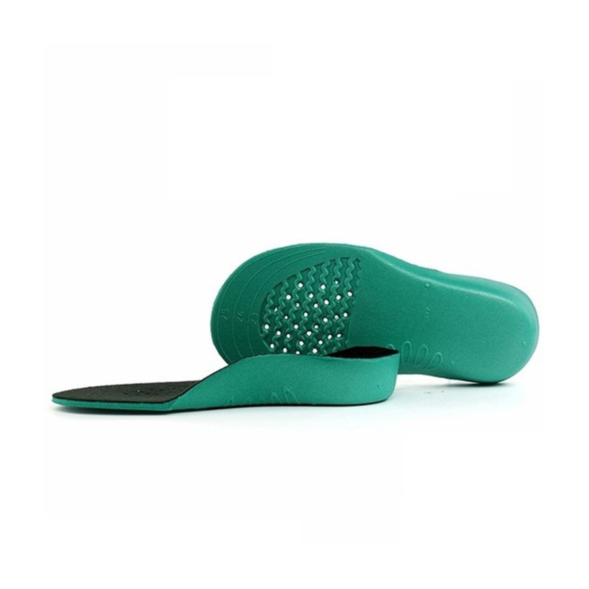 This item is a pair of orthotic insoles. Made of and EVA, and comfortable to wear, breathable. It can absorb shock, resist skid and relieve pain. Arch support and cupped heel design provides a firm support. Ergonomically designed, totally comform to the shape of children’s feet. Deals with the major legs types: leg, X leg, and splayfoot and flatfoot. It is tailorable. Can be cut to size accroding to your kids feet. Suitable for sports shoes, flat shoes, boots, and many other shoes.