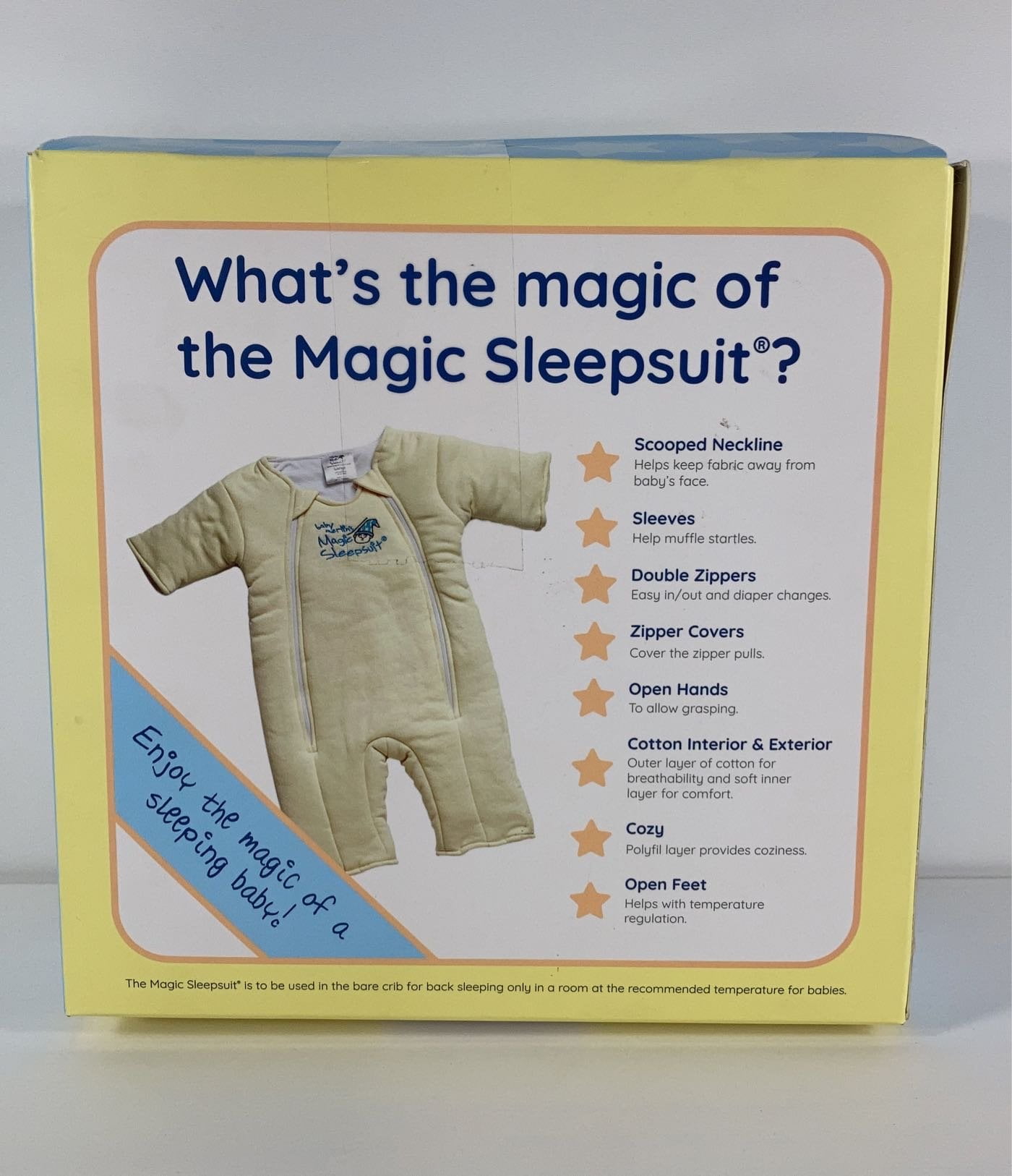 Condition: Open Box (Floor model or return- flaws, if any, will be minor and original box may not be included) Many parents swear by this suit for getting babies to sleep better at night. Great for babies who love to be swaddled but are ready to transition to a sleep sack. The thick arms and legs help minimize the startle reflex as baby gets used to sleeping with their arms free. For infants 3-6 months made with 100% cotton in Cream color.Machine Washable; Easy to use; Sleep Aid; Cream; Infant