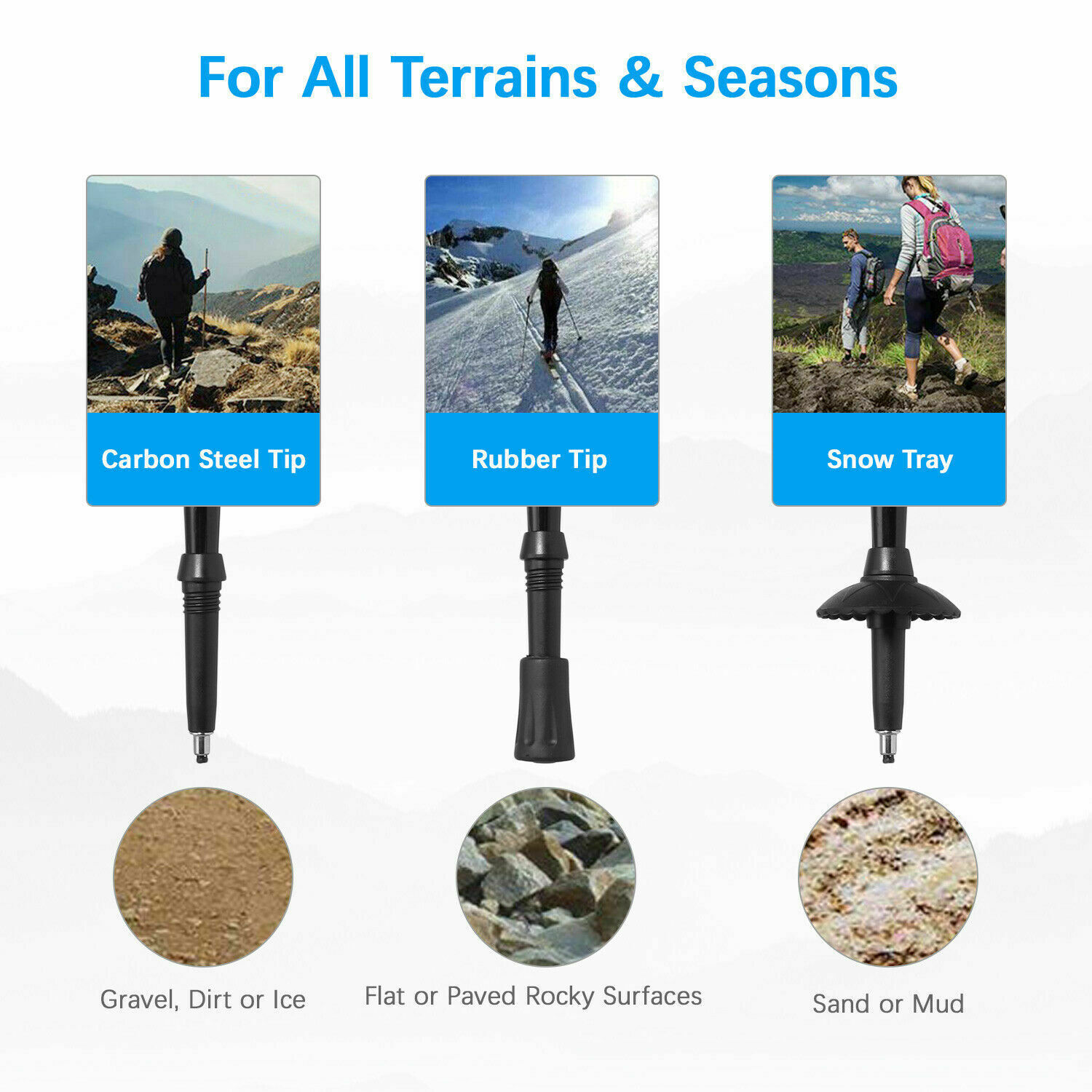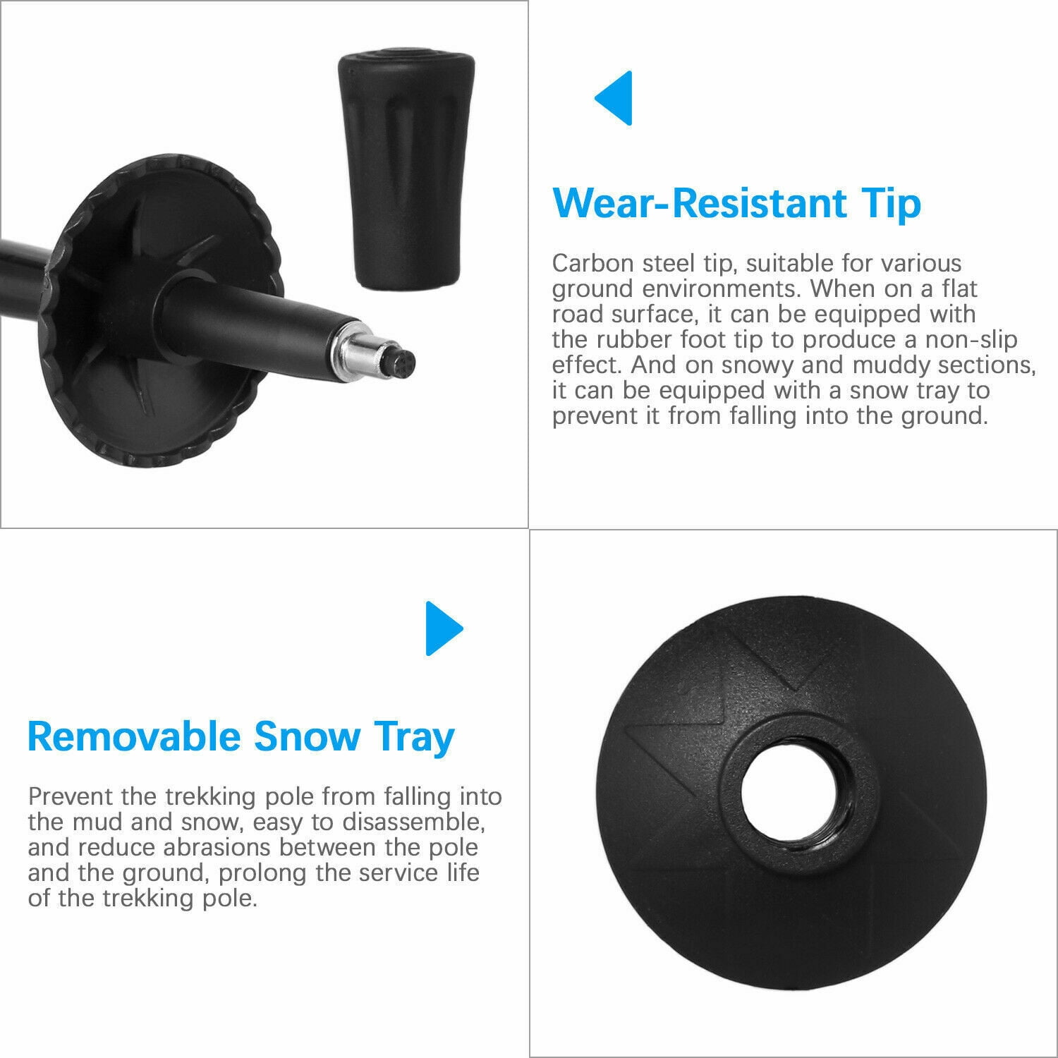 Anti shock poles: With the High Quality 6 Series Aluminum Material, the Shock-Absorbing Effect Can Strongly Reduce Damage From the Impact Force Ergonomic handle with foam and adjustable wrist strap, contains anti-shock springs