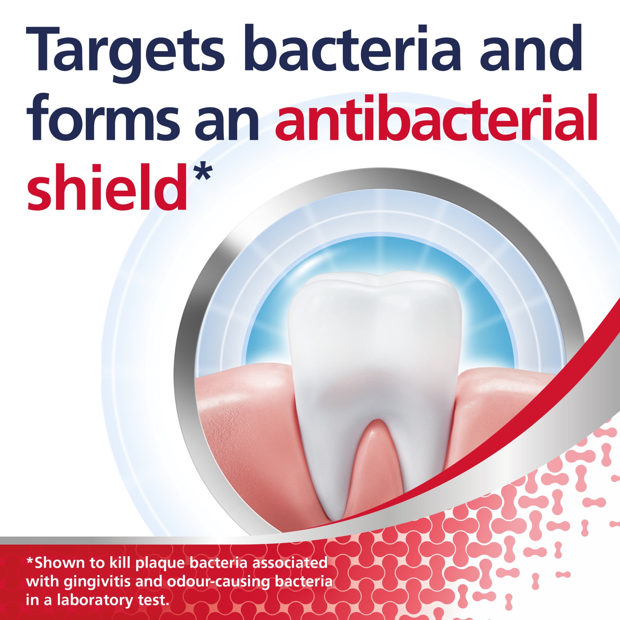 Enhance your gum care routine and help take control over bleeding gums with Parodontax Active Gum Health Mouthwash. Designed for people with bleeding gums and free from alcohol and formulated with Cetylpyridinium Chloride (CPC), this oral rinse is designed to kill 99.9% of plaque bacteria (1) that builds up along the gum line, one of the main causes of bleeding gums. With daily use, this mouth rinse forms an antibacterial shield (1) that helps prevent the build-up of plaque bacteria to help take back your gum health. This antiplaque and antigingivitis mouthwash comes with a mint flavor to help keep your mouth fresh and clean. For best results, rinse with this antibacterial mouthwash daily after brushing your teeth. Enhance your dental care routine for healthy gums and teeth. (1) Bacteria associated with gingivitis in a laboratory test
