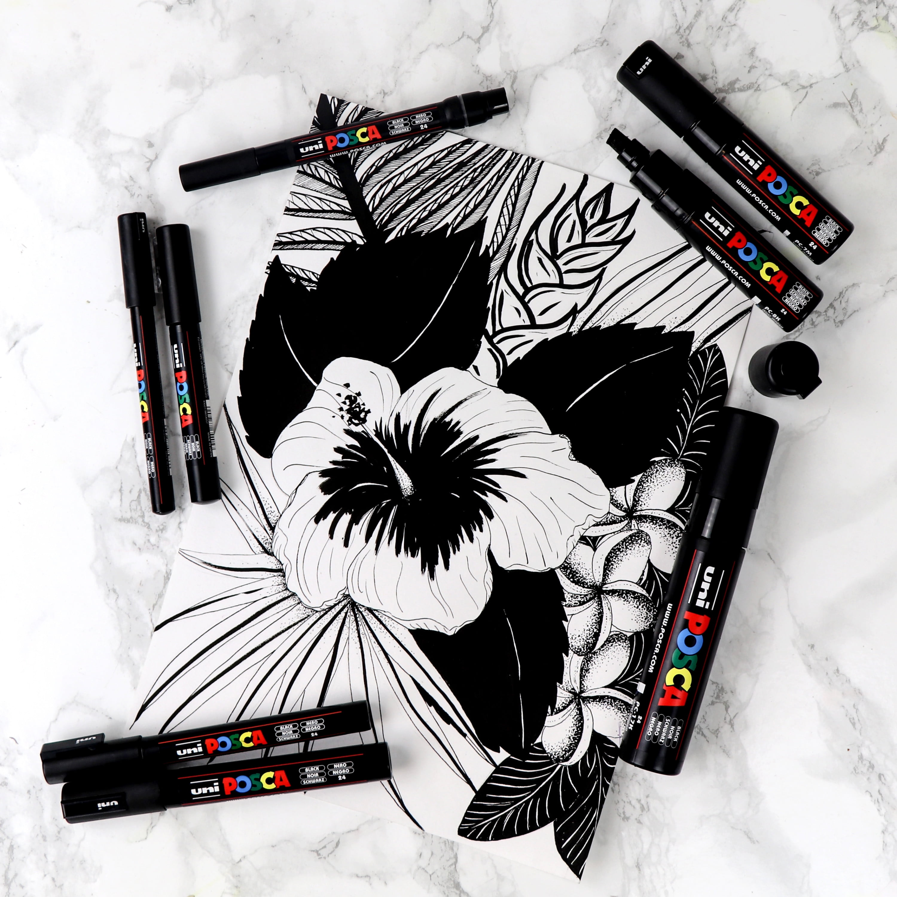 Non-toxic, water-based POSCA paint markers can be used on almost any surface, and are loved by professionals, creative hobbyists and amateurs alike. The alcohol and solvent-free opaque paint covers well, is blendable, dries quickly and can be overlaid when dry. ACMI certified and made in Japan. The PC-5M medium bullet tip marker is the "multi-purpose" marker of the POSCA range. It produces neat and precise lines, and is ideal for coloring. An all-around favorite of both professionals and beginners.