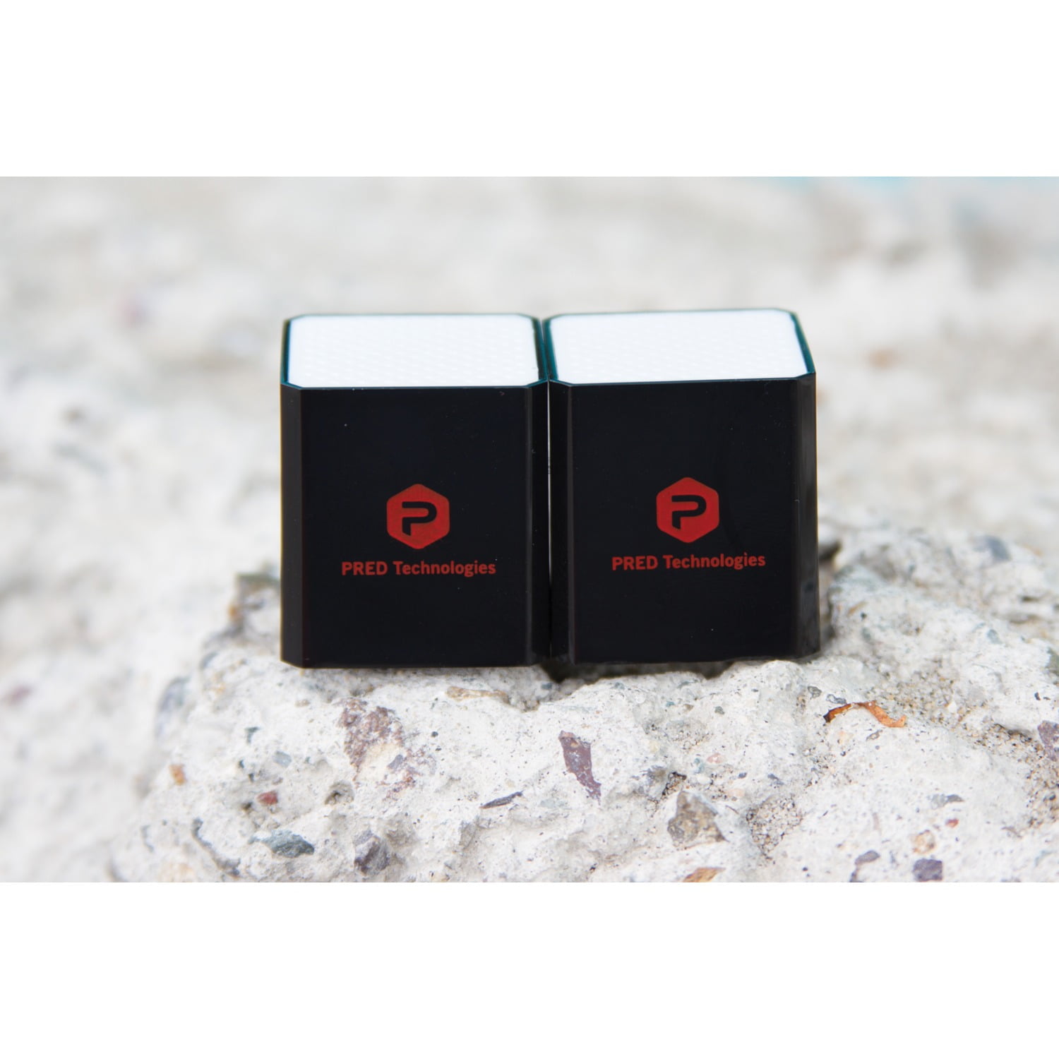 With its super-small profile, PRED Technologies P3020 Smart Cube Stereo Bluetooth Speakers let you cut the cord and enjoy music on the go. Connect them wirelessly to your smartphone, tablet, and just hit play. The speakers sync without cables so you can enjoy stereo sound from over a 30 ft. range. They are equipped with magnetic backings so you can attach them to your toolbox or any other magnetic surface. For active adventurers on the go, there’s simply nothing better than Smart Cube Stereo. Its 1-touch multi-functionalities let you switch between taking calls, enjoying music, using voice control to connect to your smart phone’s intelligent assistant, or its remote shutter ability for picture taking-ideal for selfies! Designed to go anywhere, the Smart Cube Stereo are wireless speakers made to move. Their ultra-compact size and surprisingly big sound make them the ideal traveling companion.
